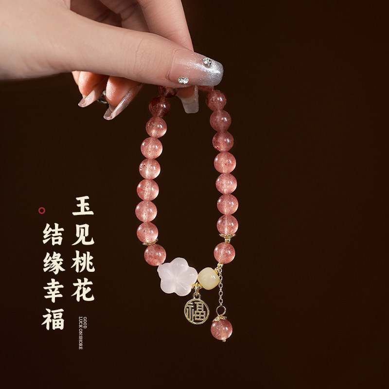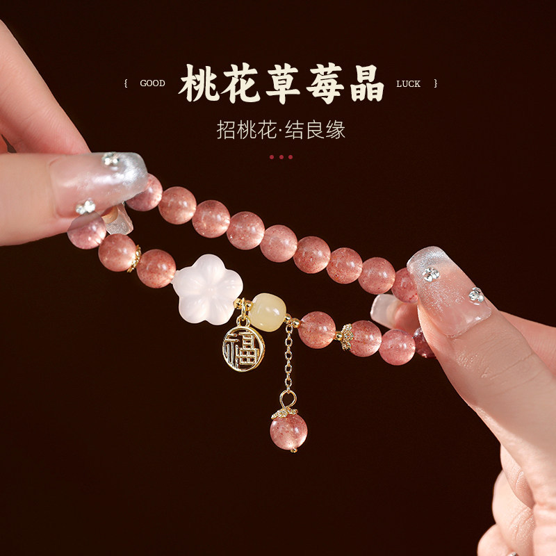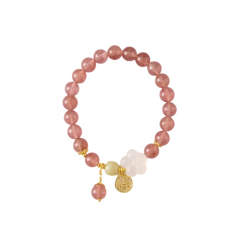 strawberry quartz pink crystal flower bracelet