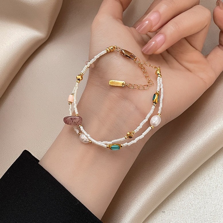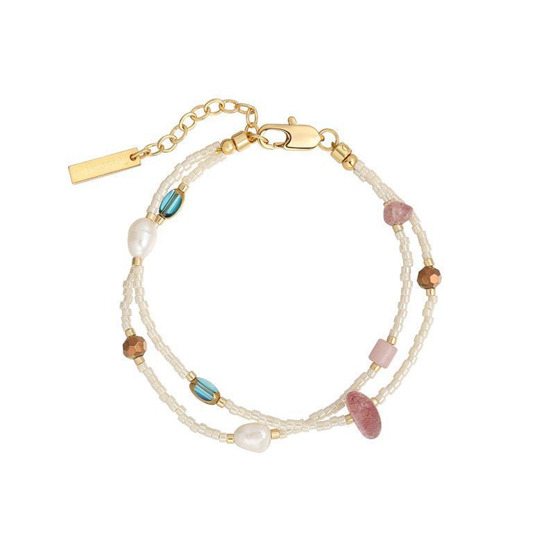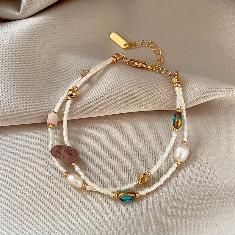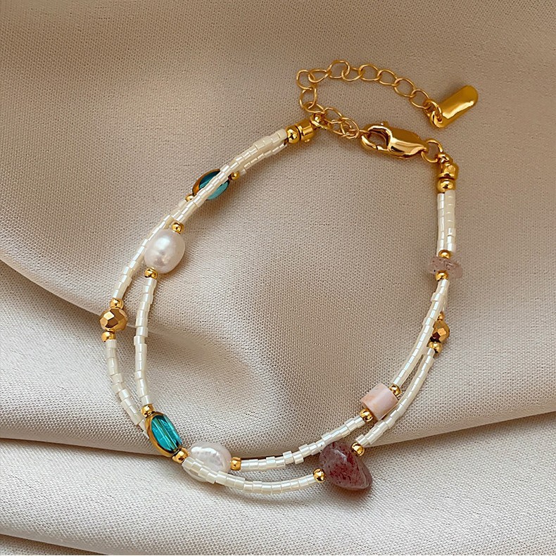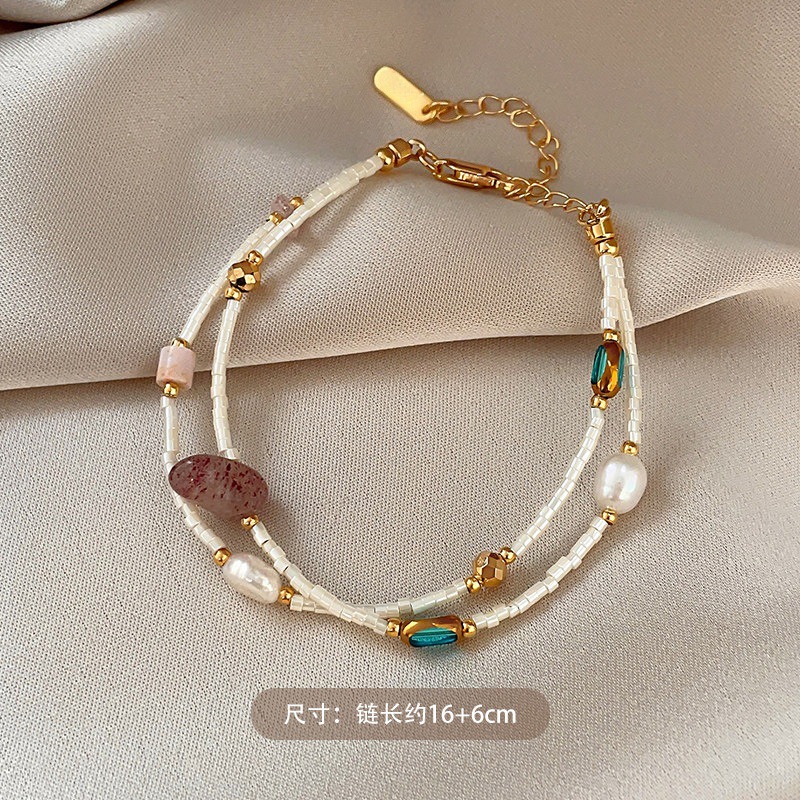 double layer bead strawberry quartz freshwater pearl bracelet
