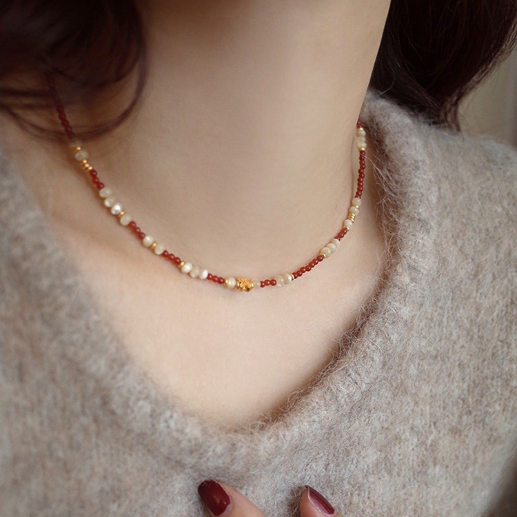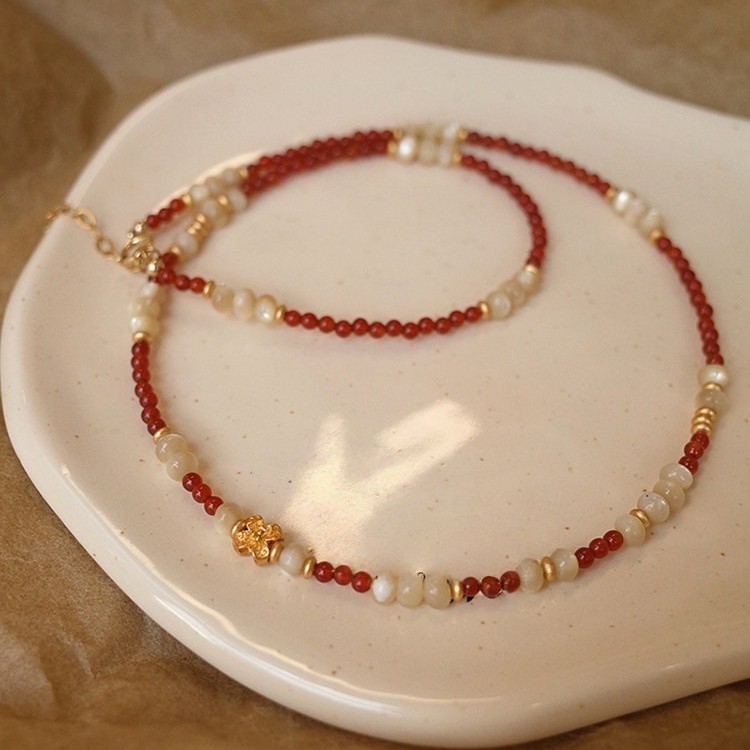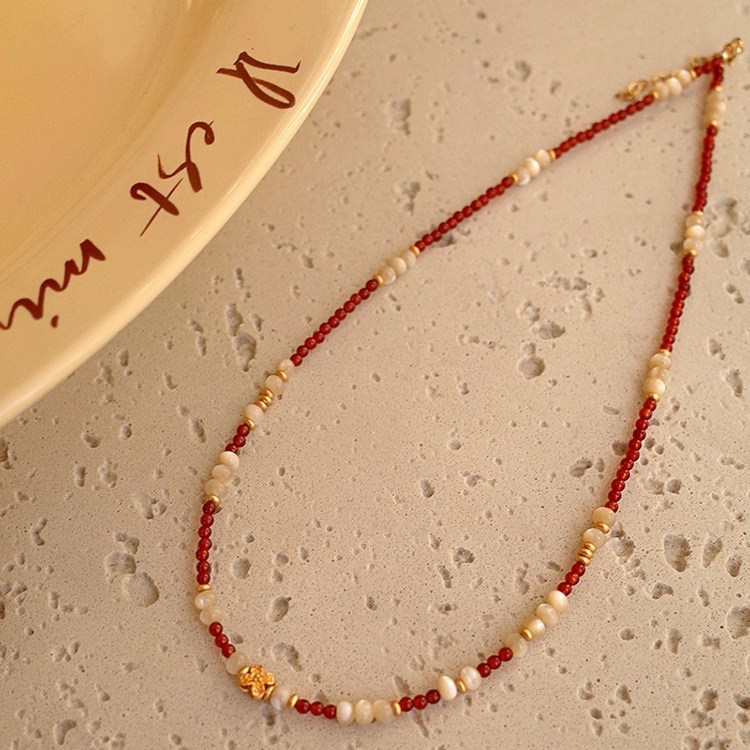 red agate shell flower necklace