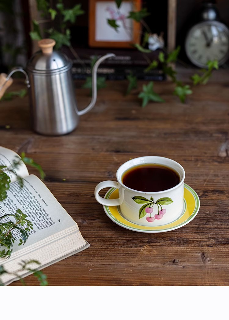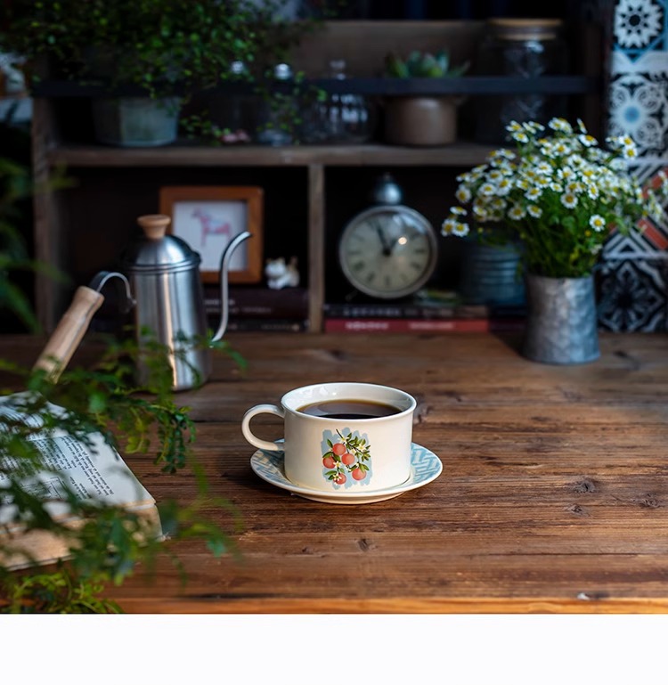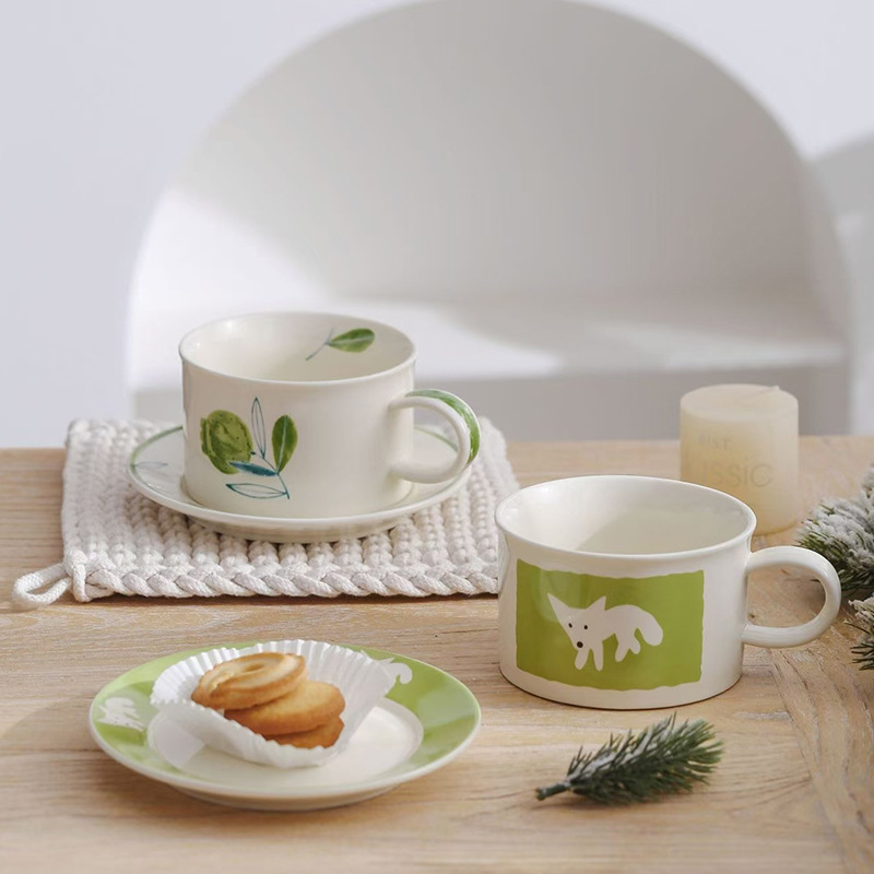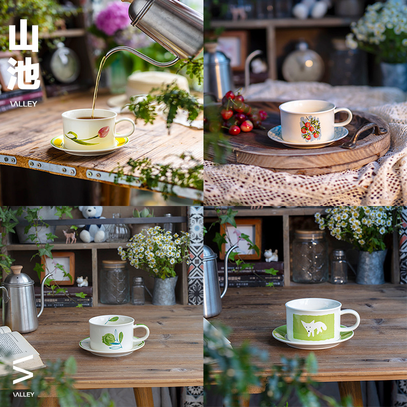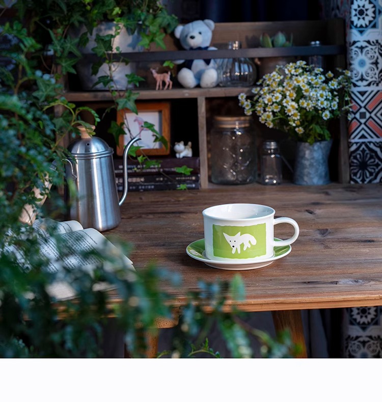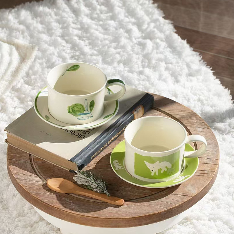 ceramic cup dish antique style wide mouth ceramic coffee set retro fox creative fruit afternoon tea cup
