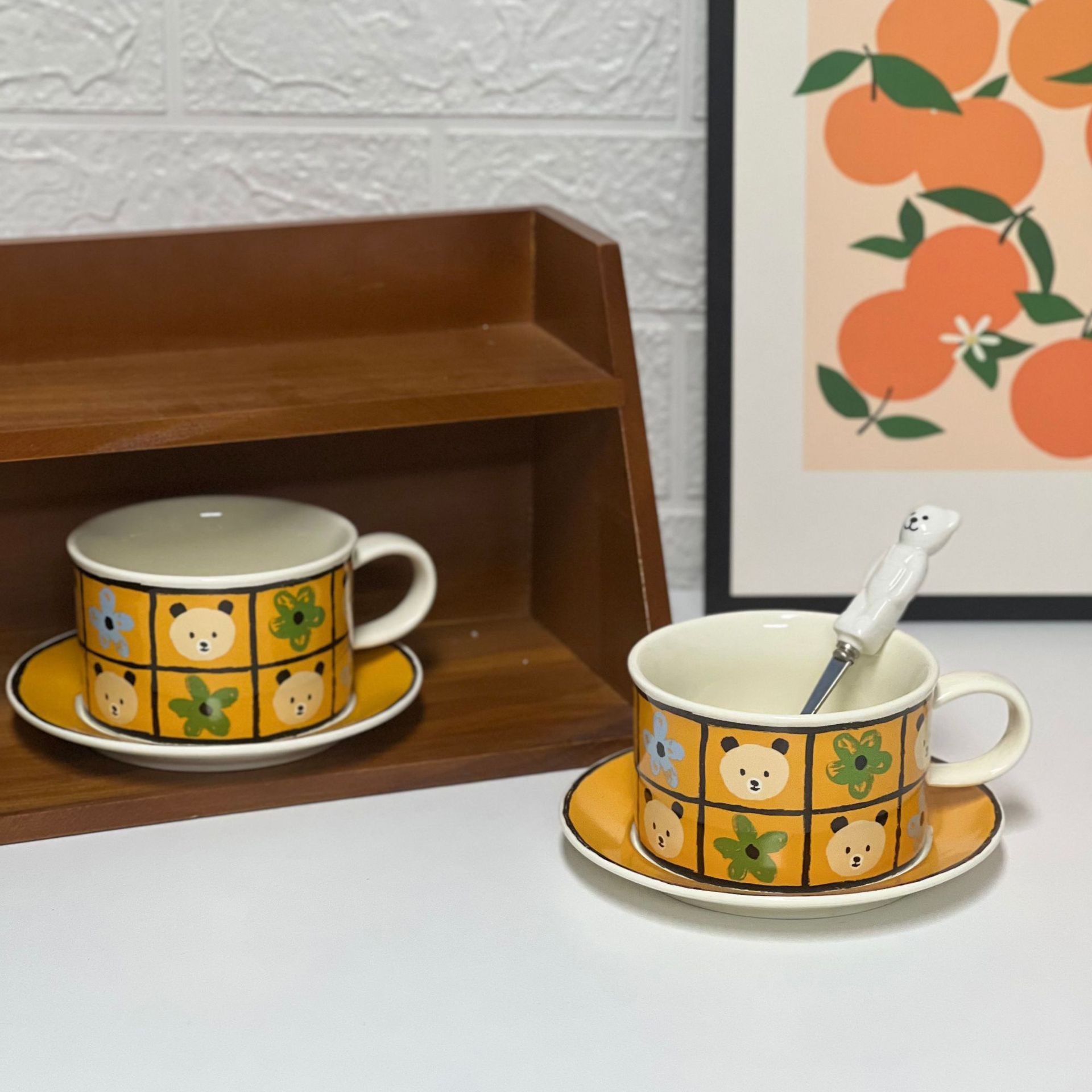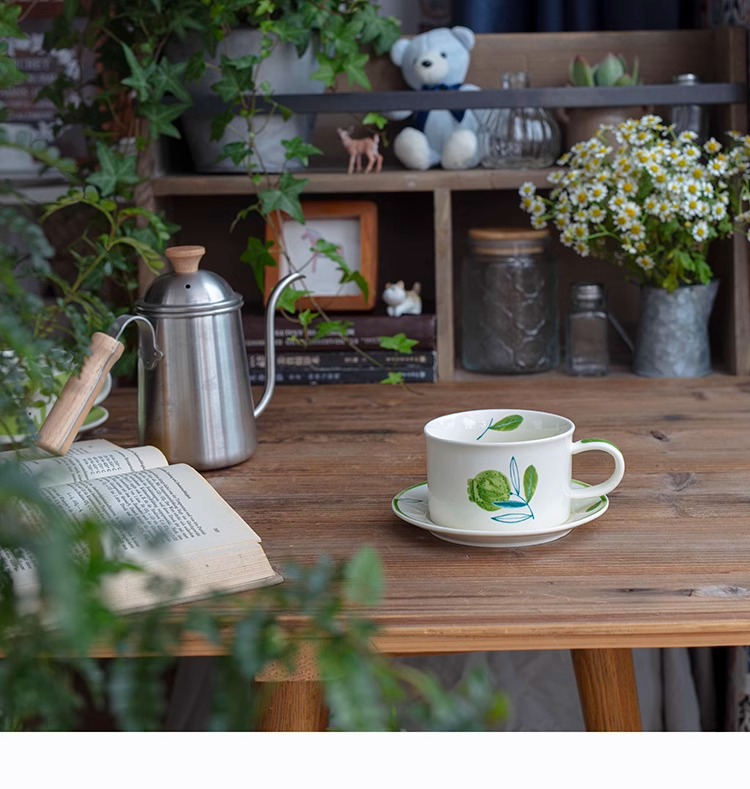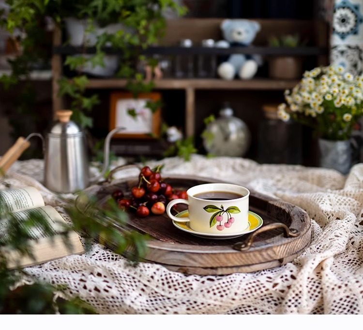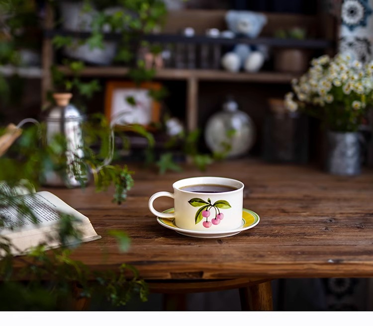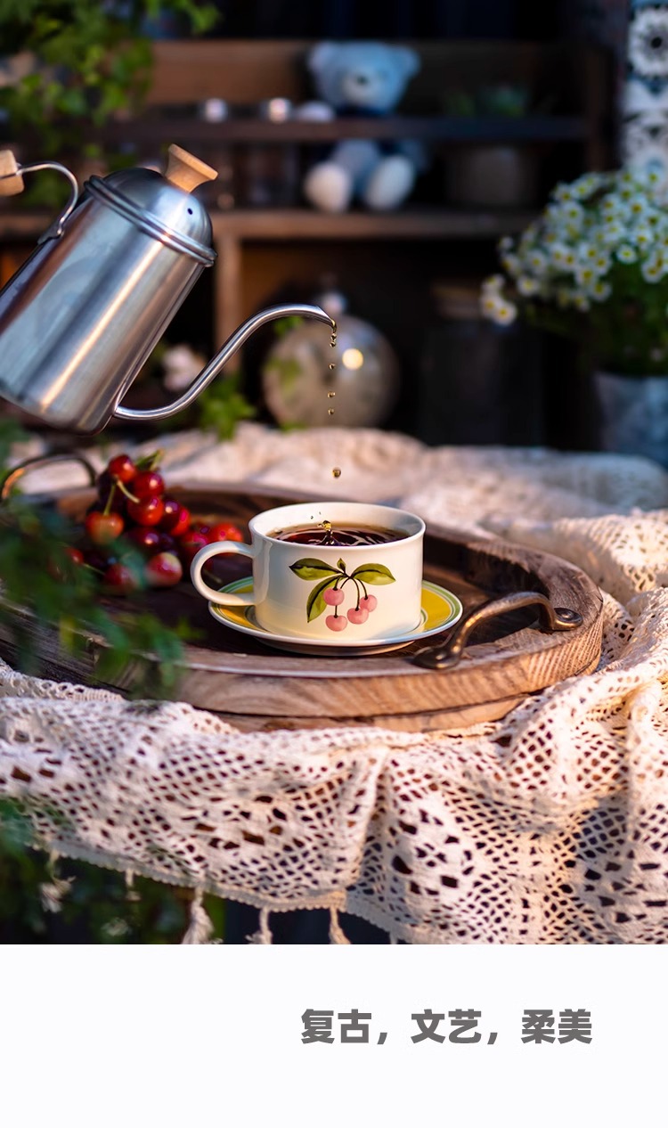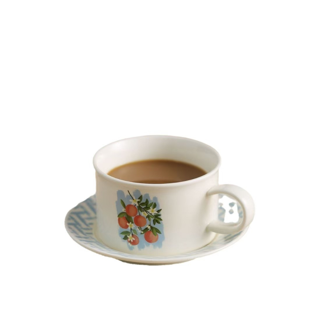 ceramic cup dish antique style wide mouth ceramic coffee set retro fox creative fruit afternoon tea cup