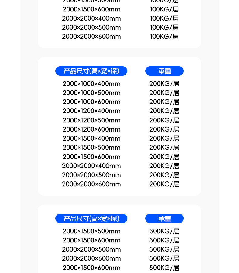 | 2000 high * 2000 long * 600 deep, four-tier heavy-duty rack, 500kg per tier * main frame | CN¥ 599.9 |