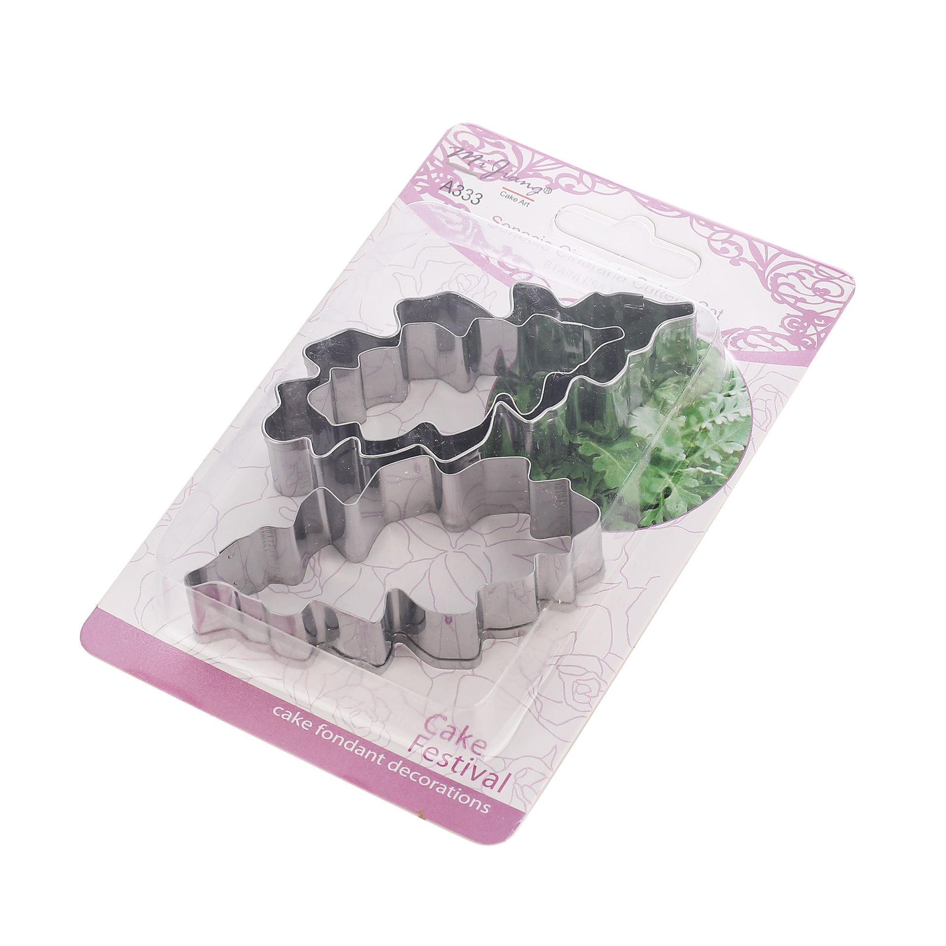 Instructions: First, place the fondant on the fondant silicone mat and roll it flat with a rolling pin. Then, use the three different sizes of the silver leaf daisy mold to cut out different-sized shapes. Place these shapes on a foam mat, and use the carving set to apply the prepared food coloring. After that, place the shaped leaves on a drying mat to allow them to dry for a while. Once the leaves are dry and set, arrange them from small to large to create a realistic silver leaf daisy.