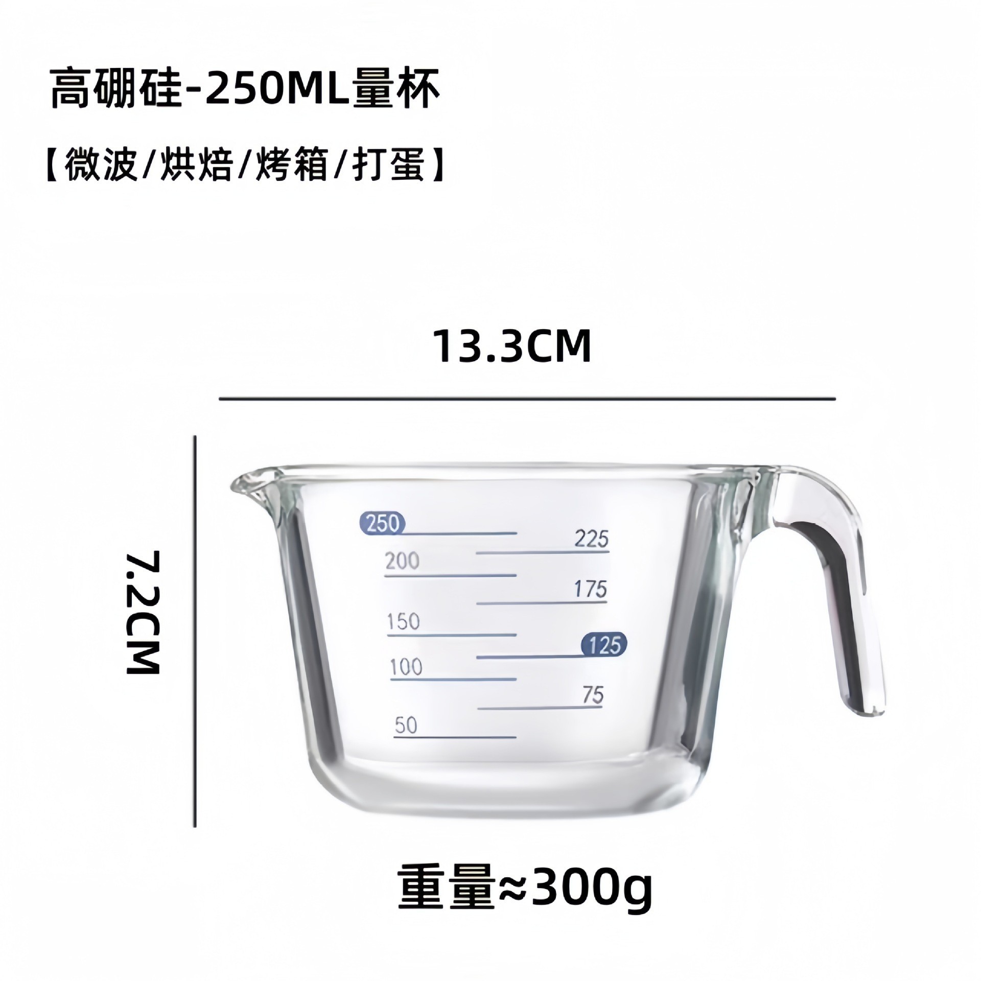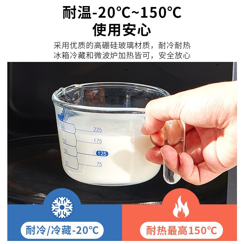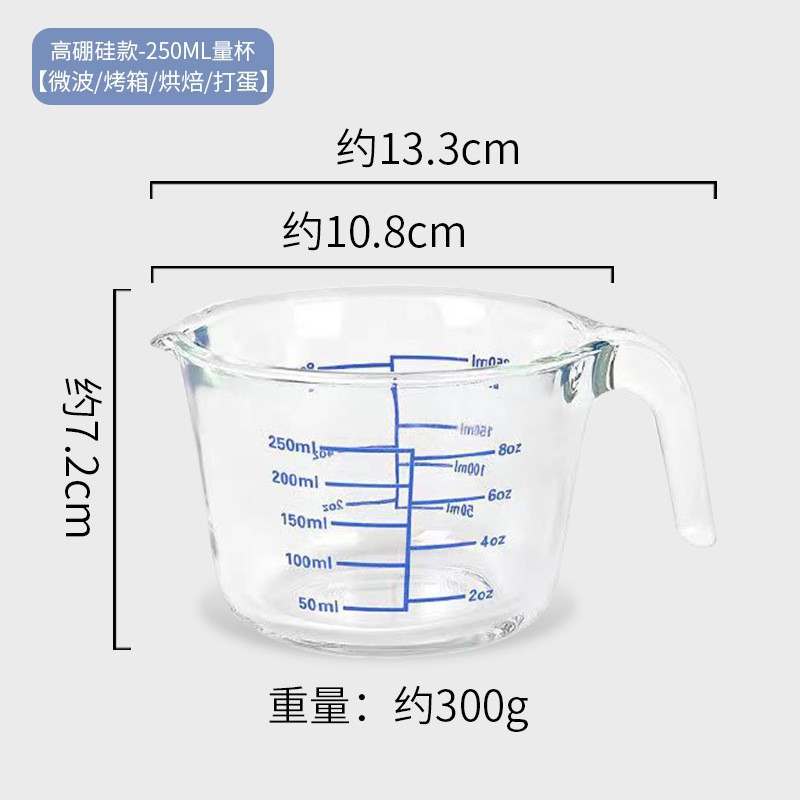new curved-graduation 250ml small borosilicate glass measuring cup [microwave/baking/oven/egg beating]