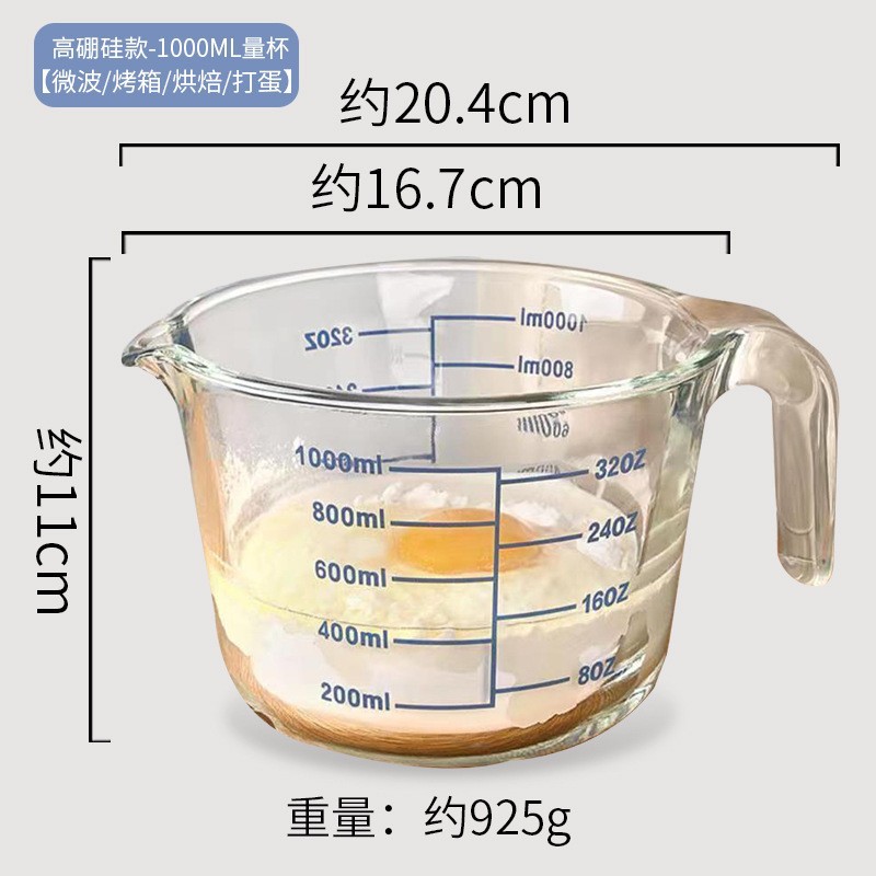 new curved-graduation 1000ml large borosilicate glass measuring cup [microwave/baking/oven/egg beating]