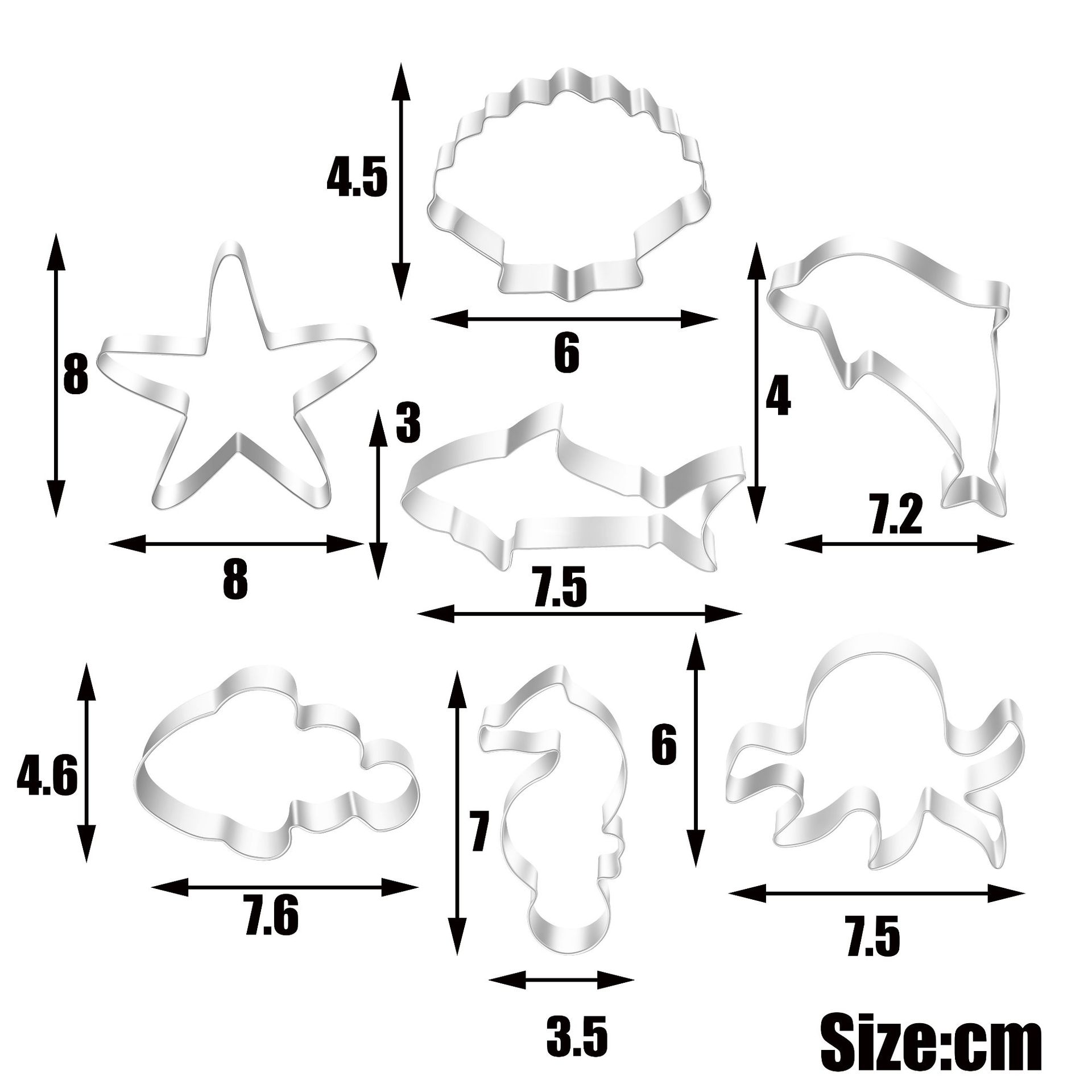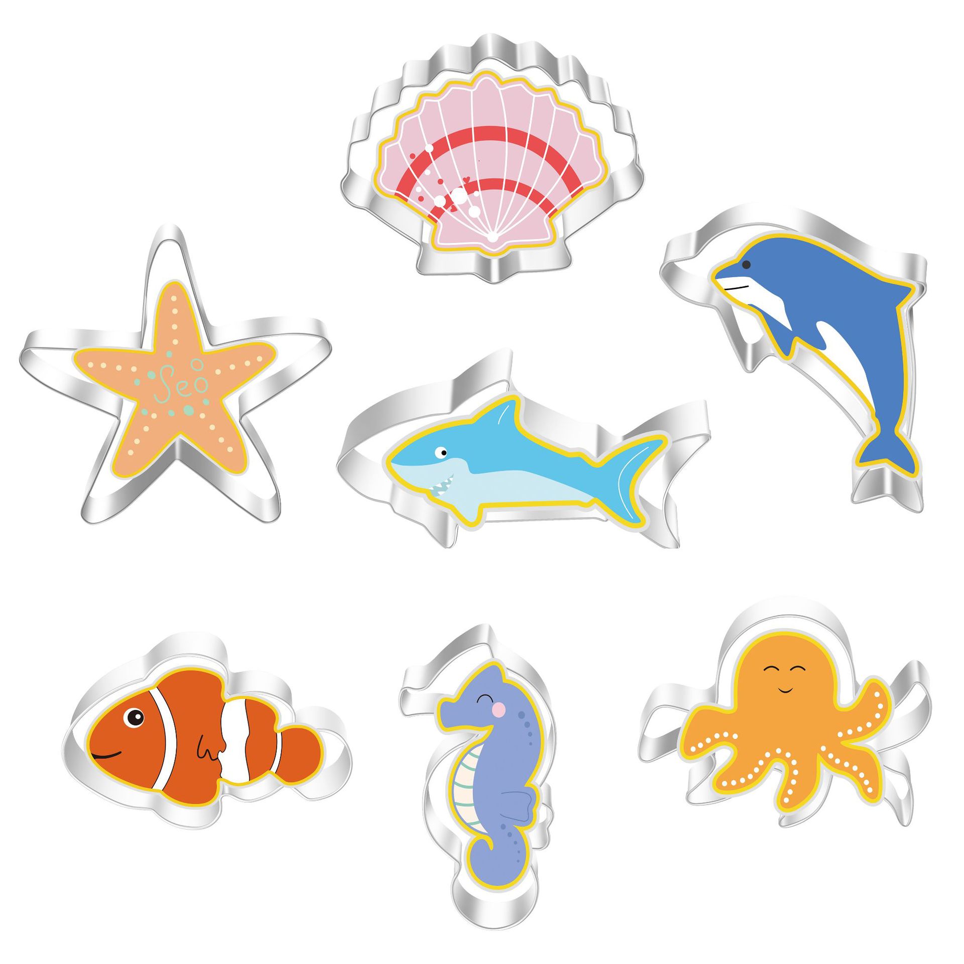Stainless Steel Cookie Cutter Set - Marine Life 7-Piece Combo