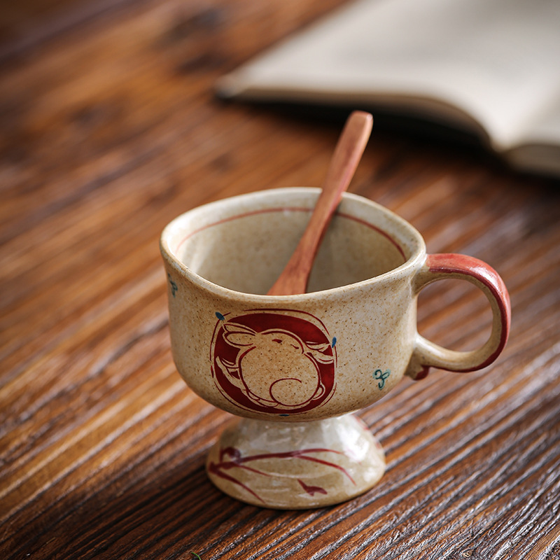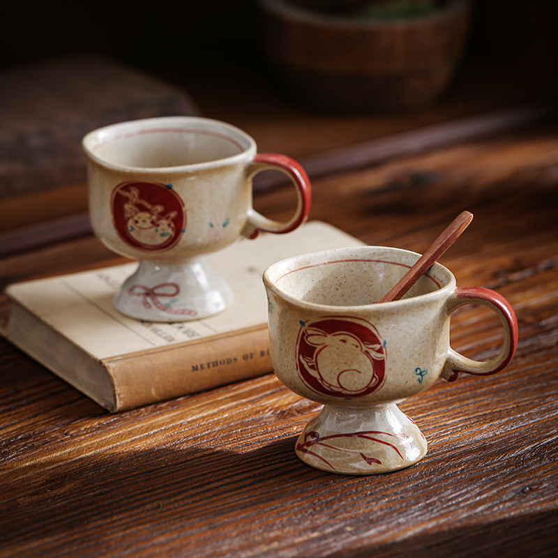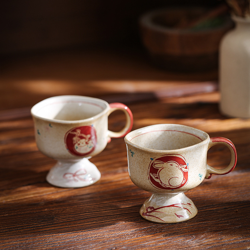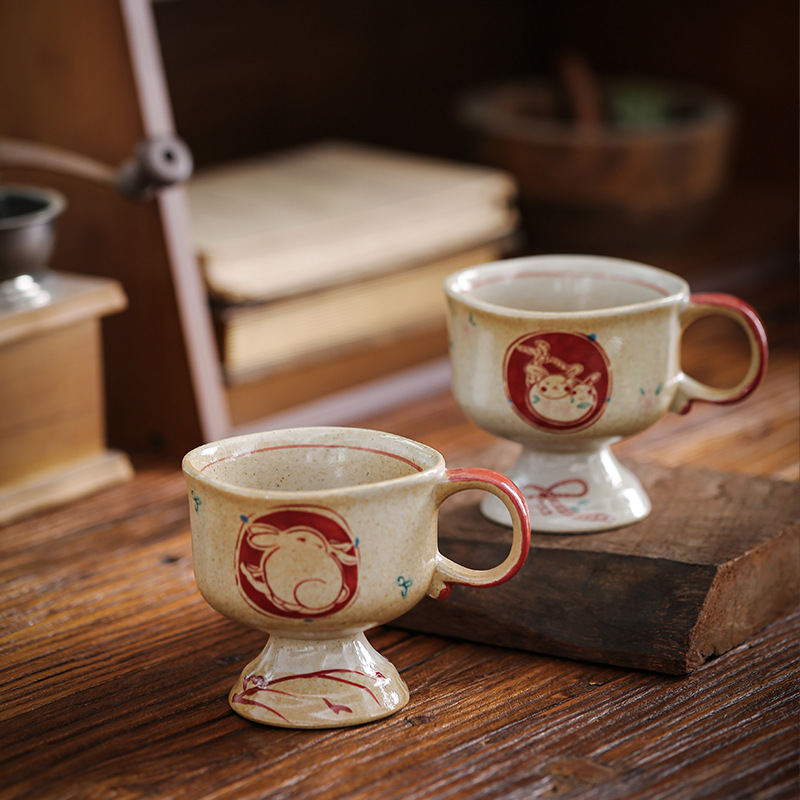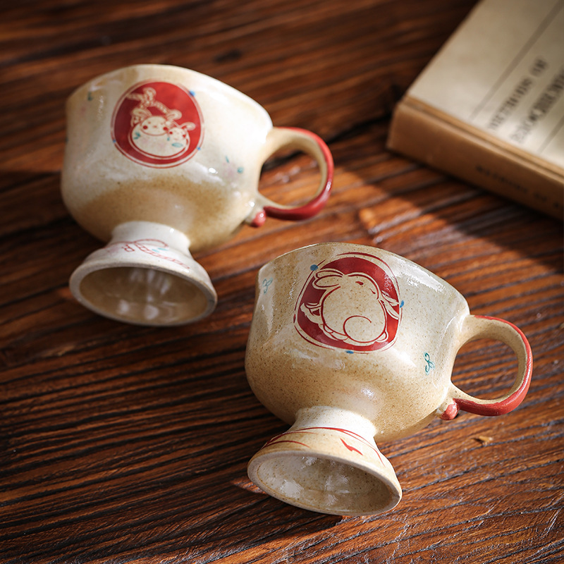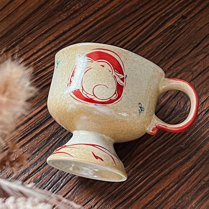 ceramic cup medieval pottery clay inkjet rabbit ceramic cup good-looking coffee cup goblet japanese mug cup