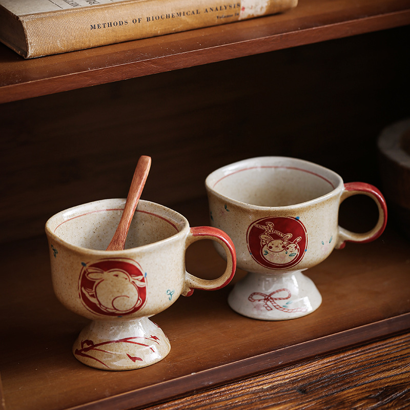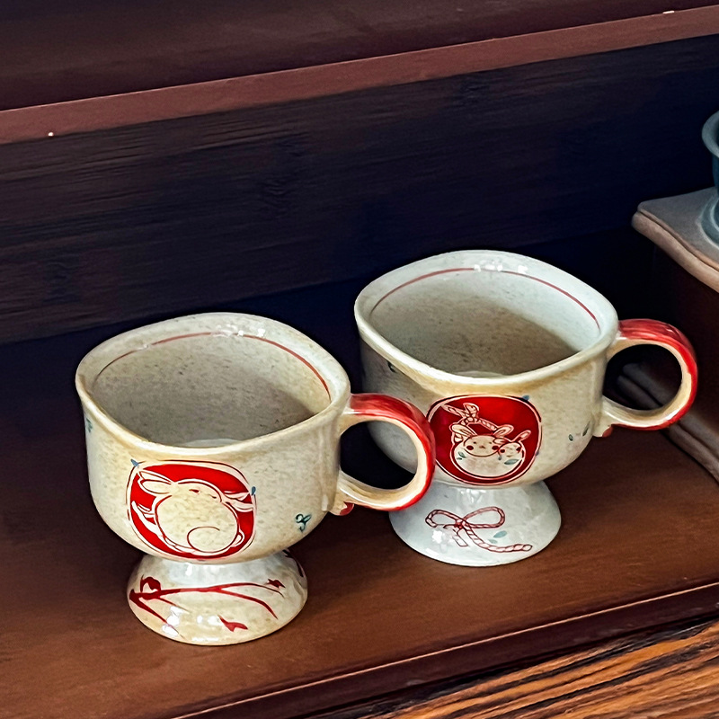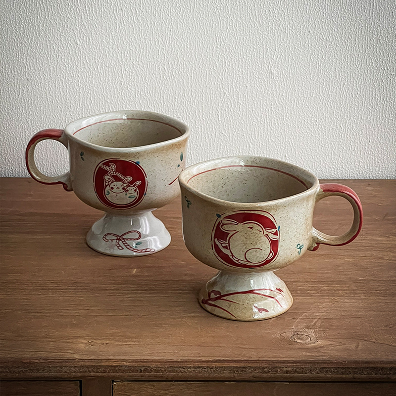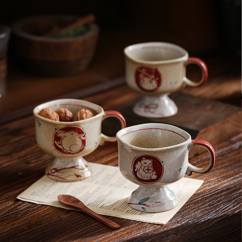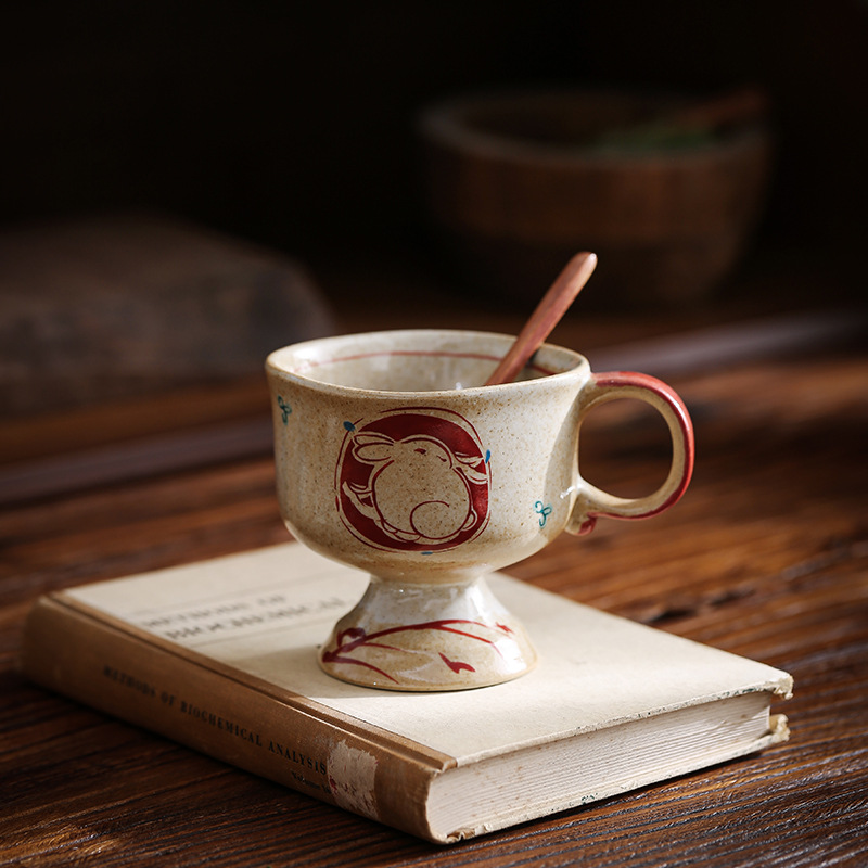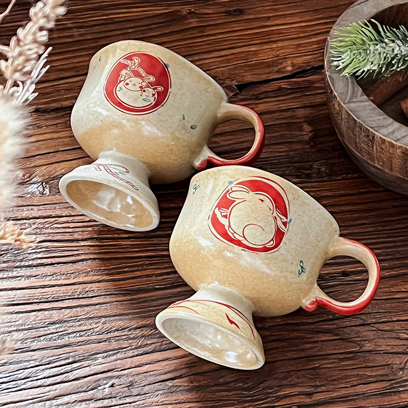ceramic cup medieval pottery clay inkjet rabbit ceramic cup good-looking coffee cup goblet japanese mug cup
