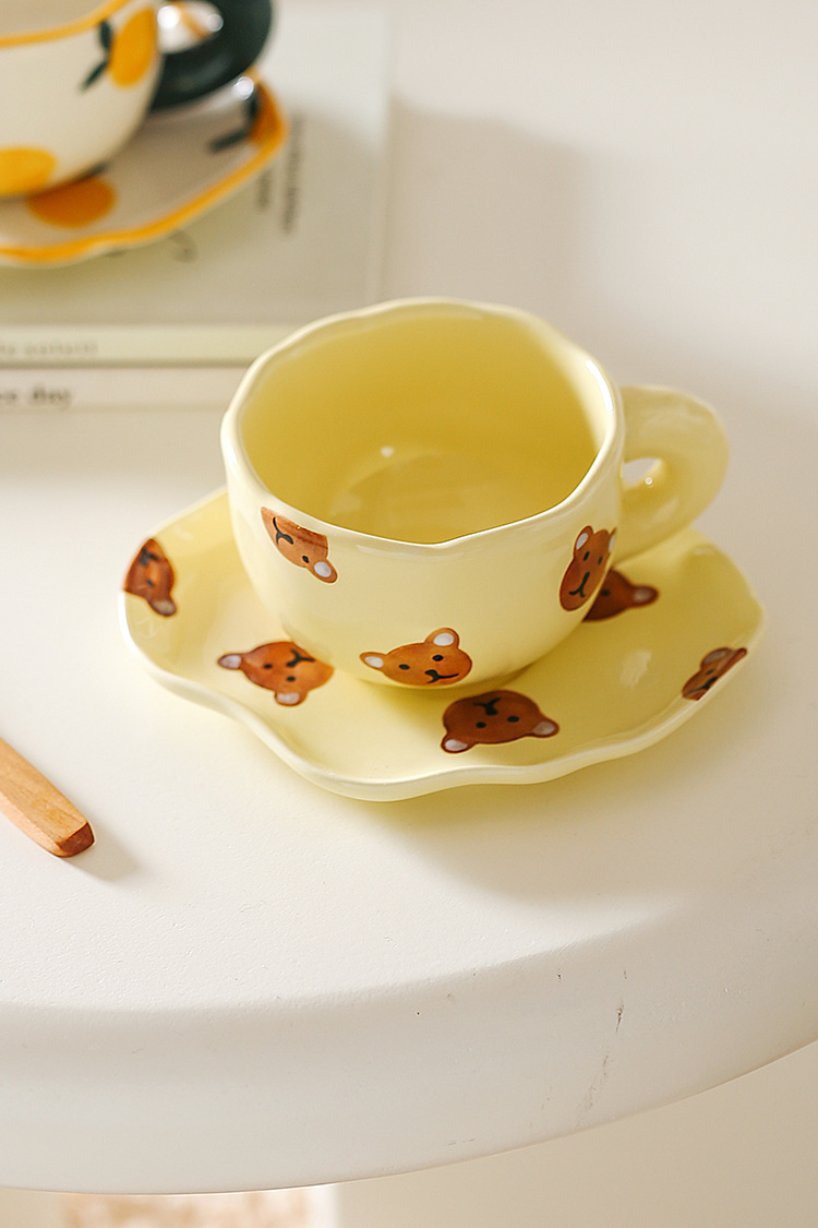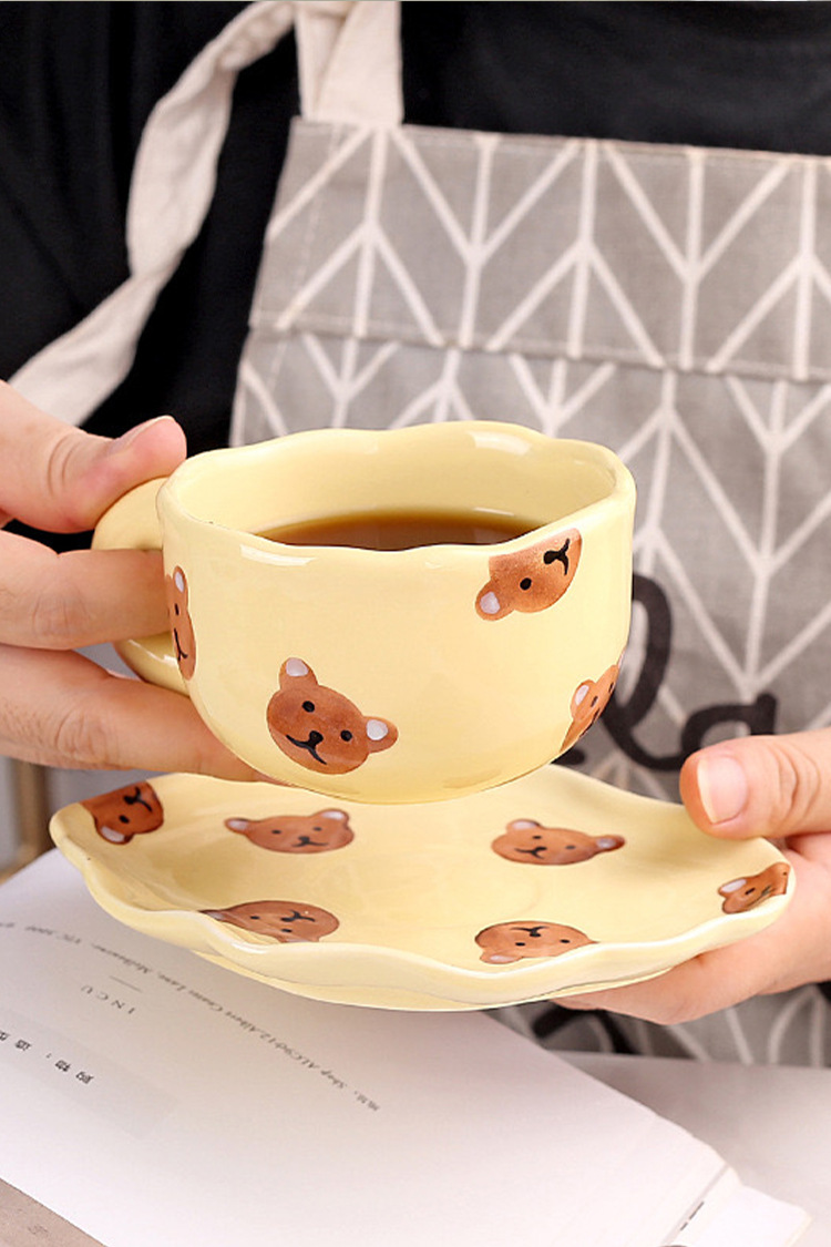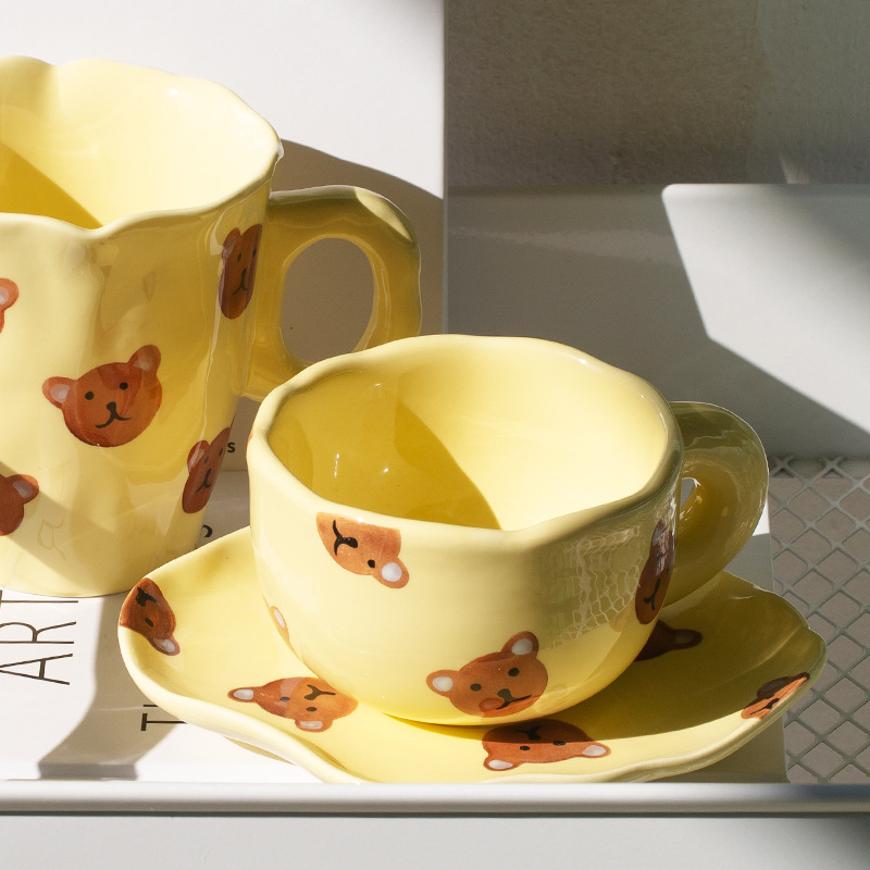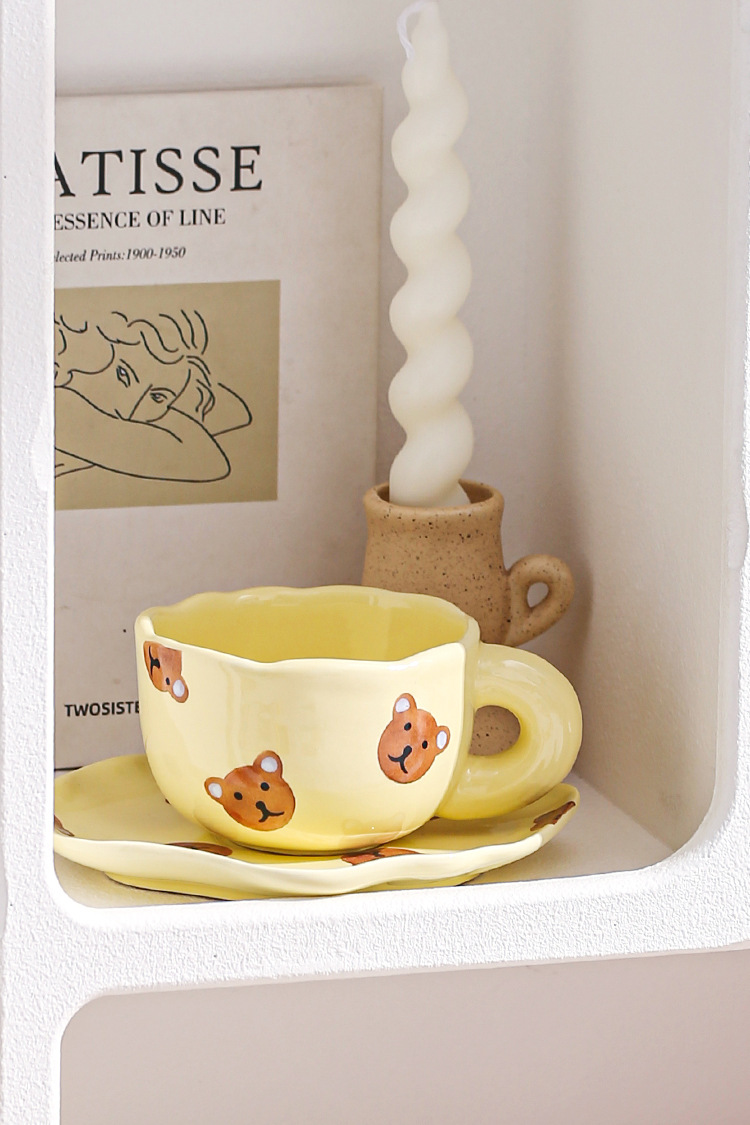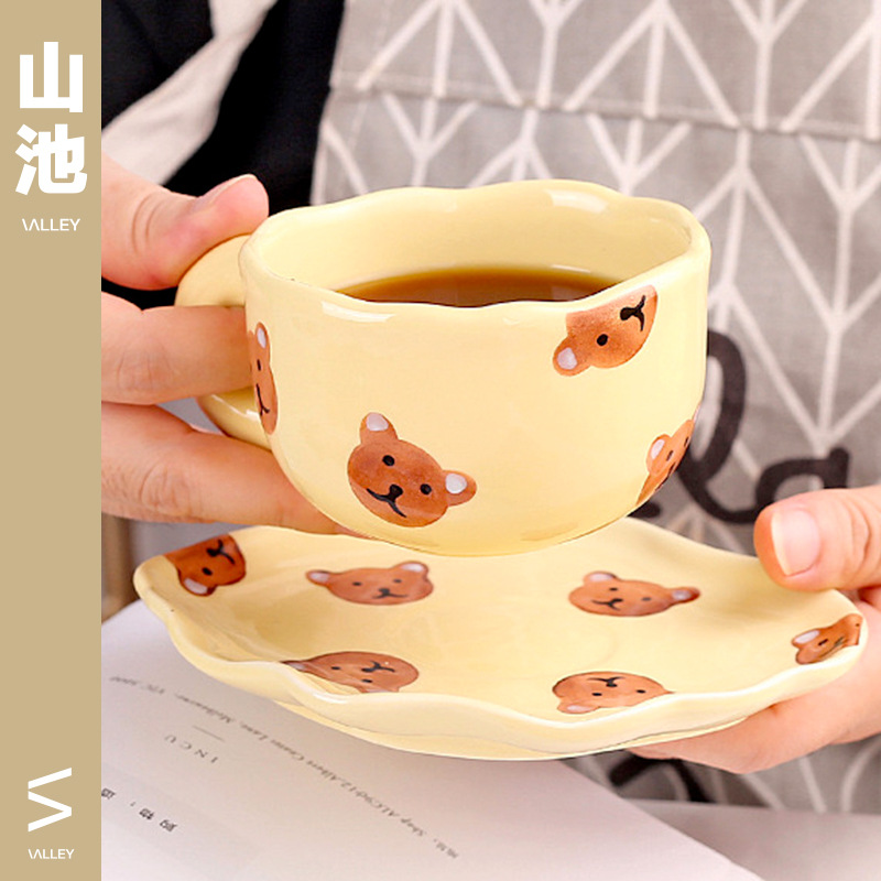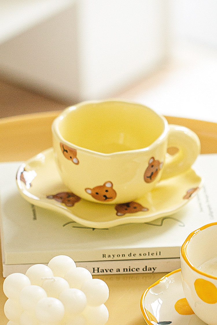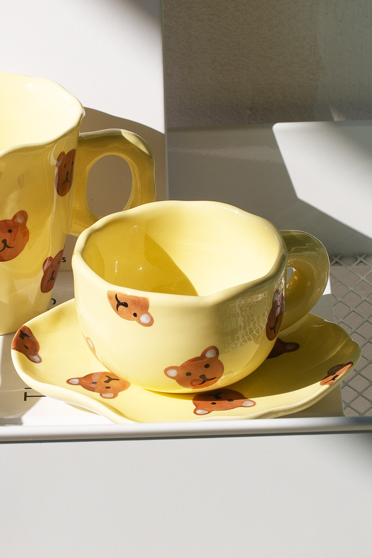 ceramic cup dish super cute hand painted yellow bear coffee cup with saucer girl ceramic cup water cup