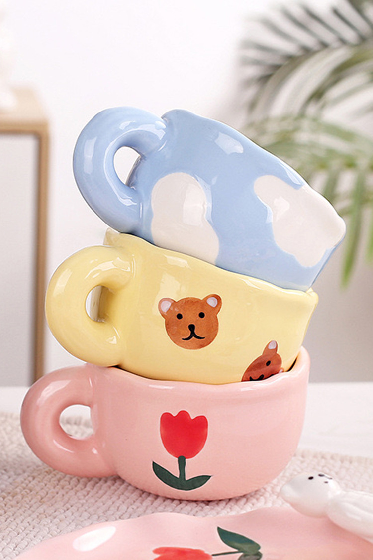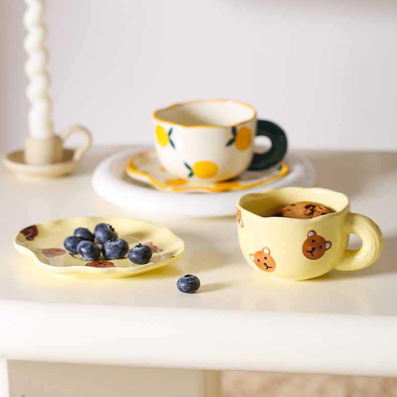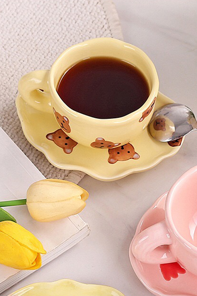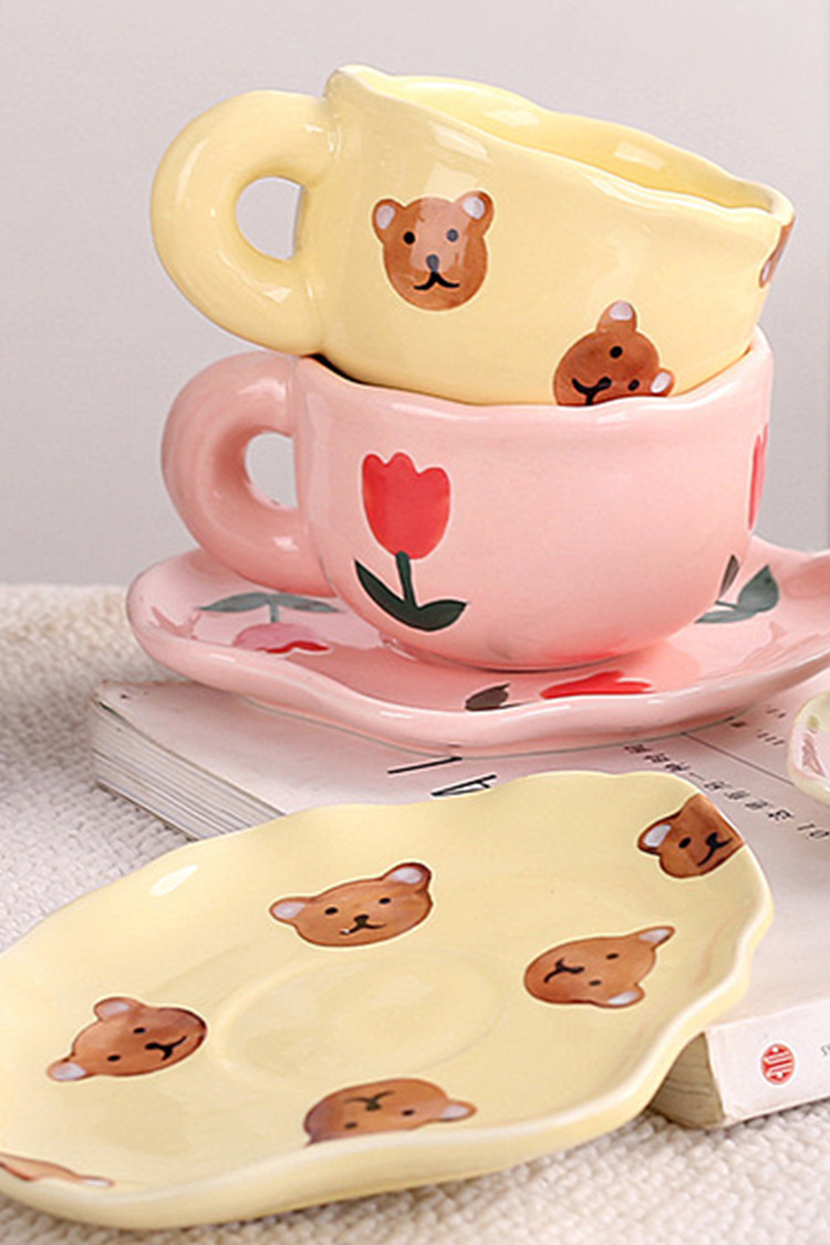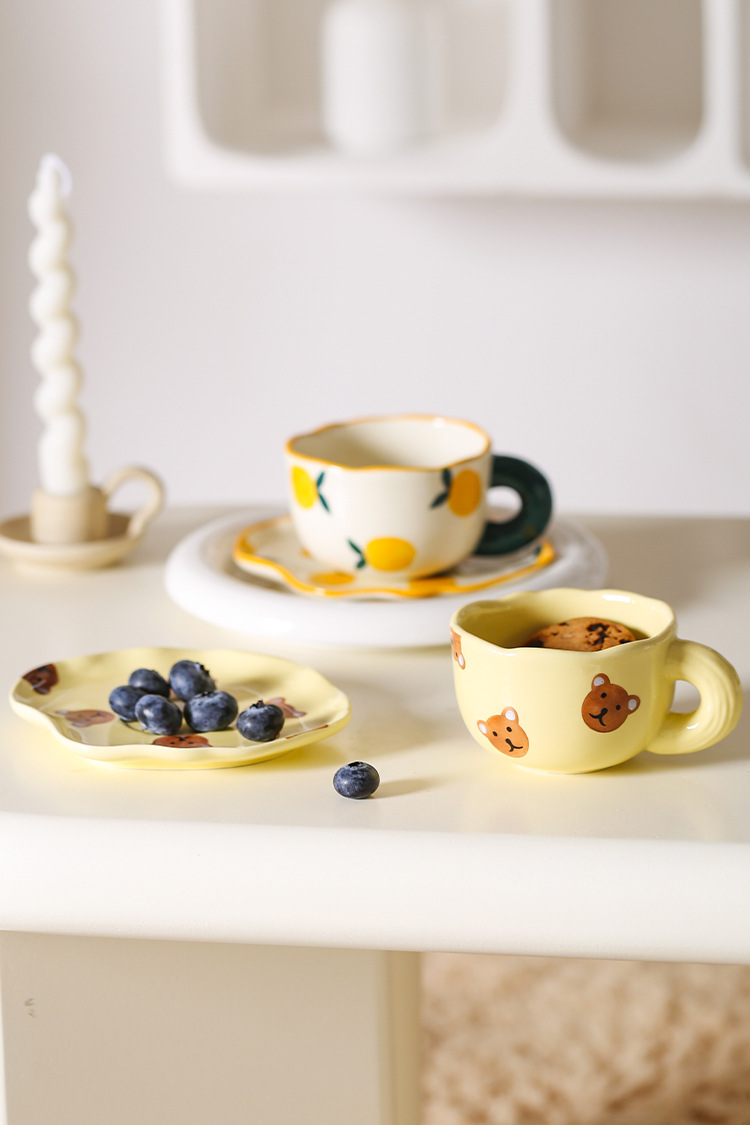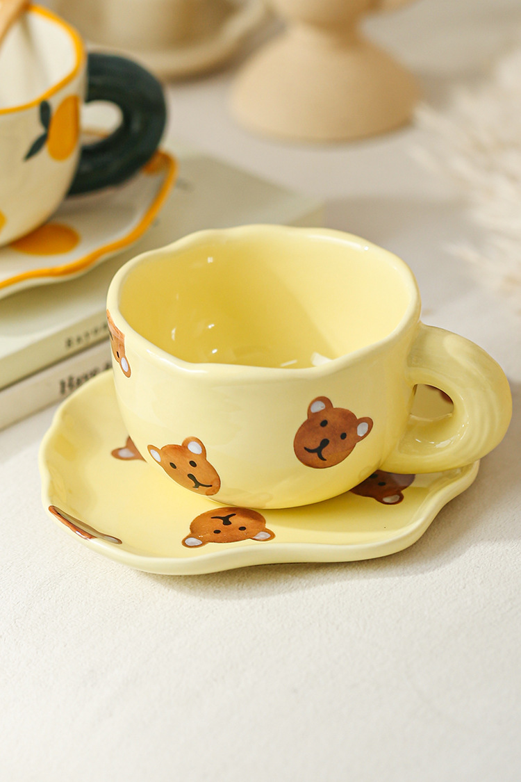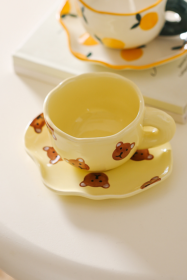ceramic cup dish super cute hand painted yellow bear coffee cup with saucer girl ceramic cup water cup