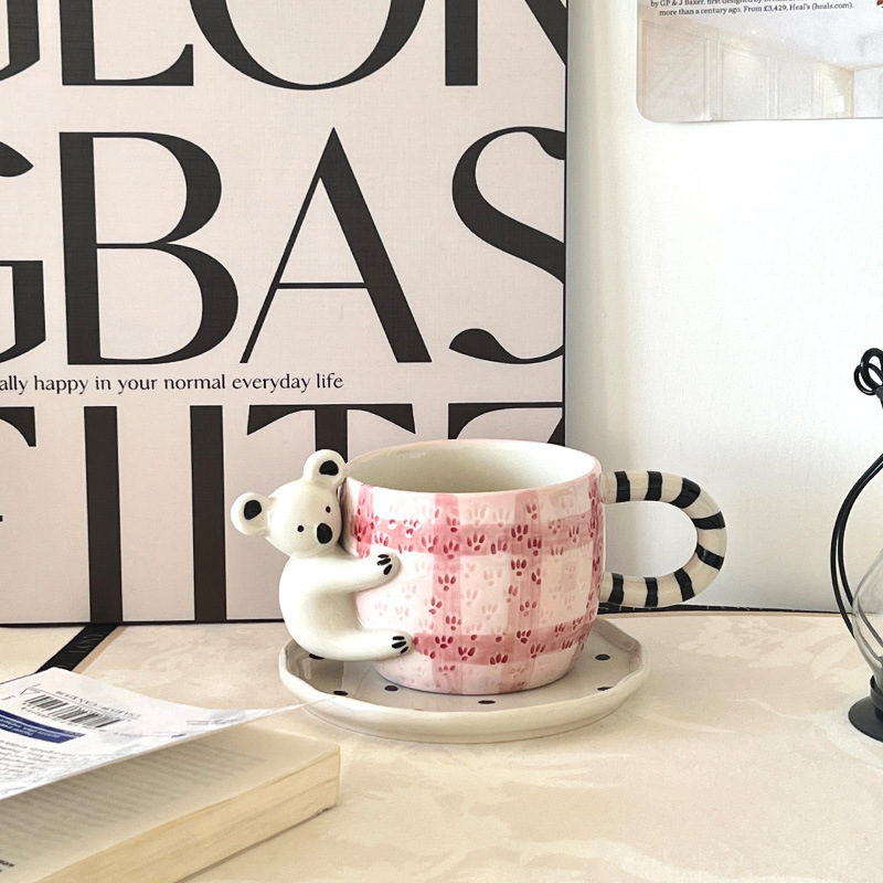 Japanese-style Hand-drawn Koala Coffee Cup and Saucer Set