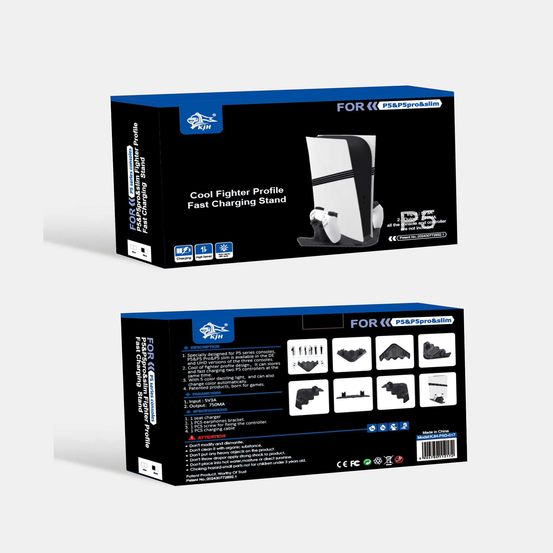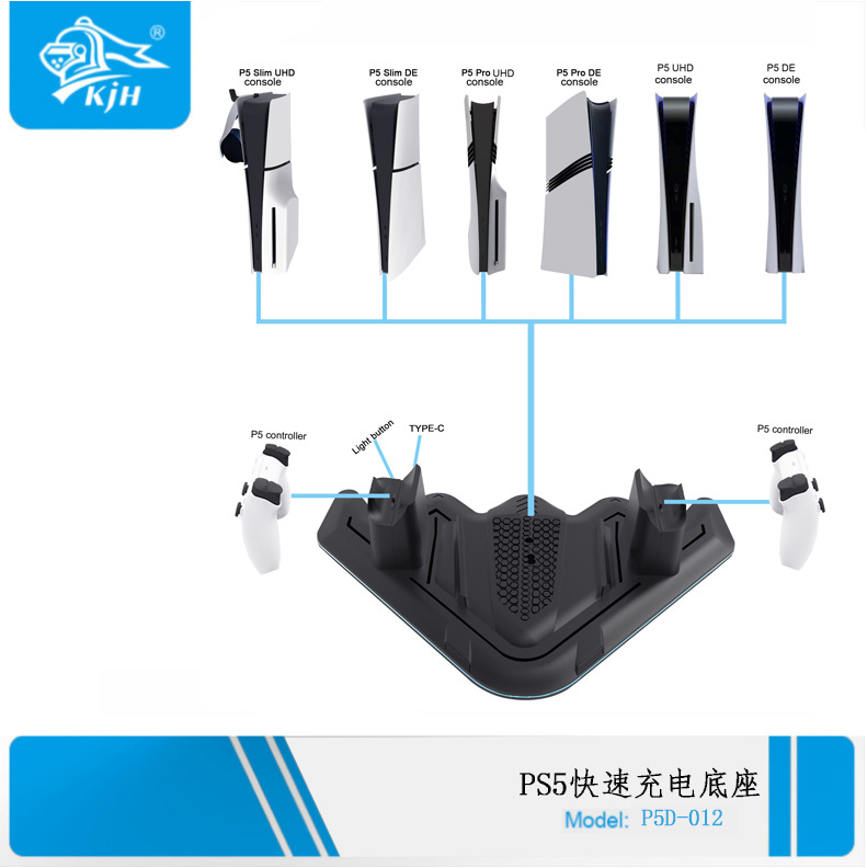 2. Ultra-cool fighter jet-style design allows for the storage of two P5 controllers and quick charging simultaneously.