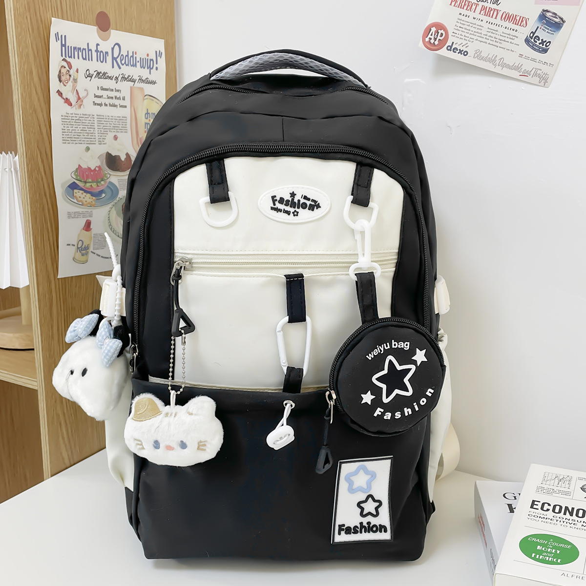 popular elements: stitching, contrast color, english letters