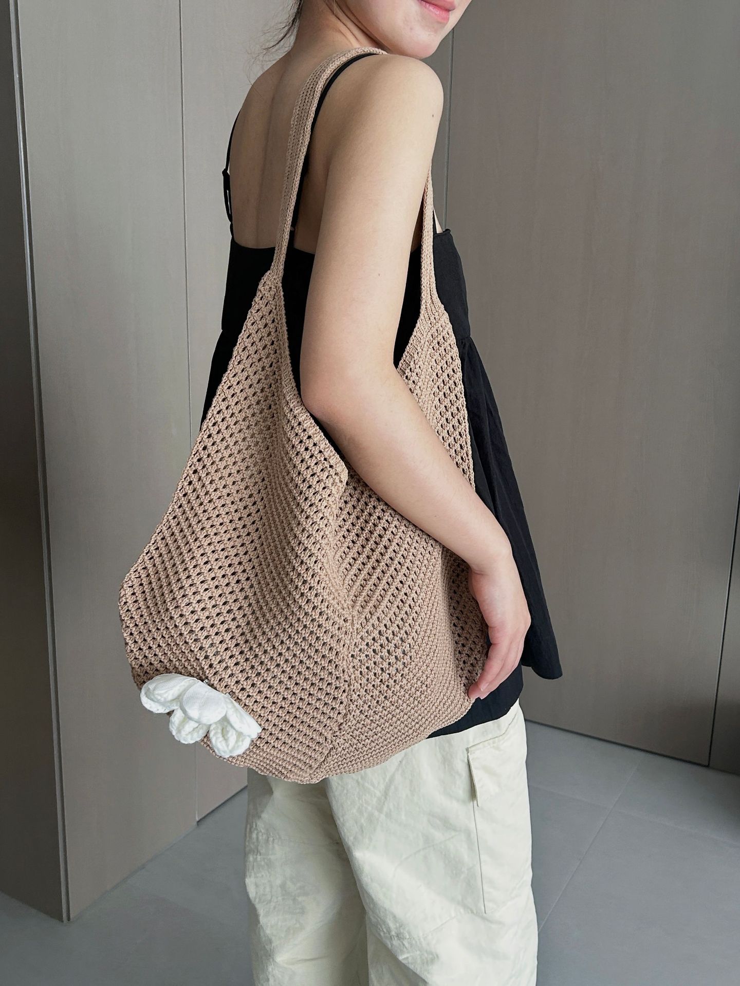 double-shoulder strap no flower-beige