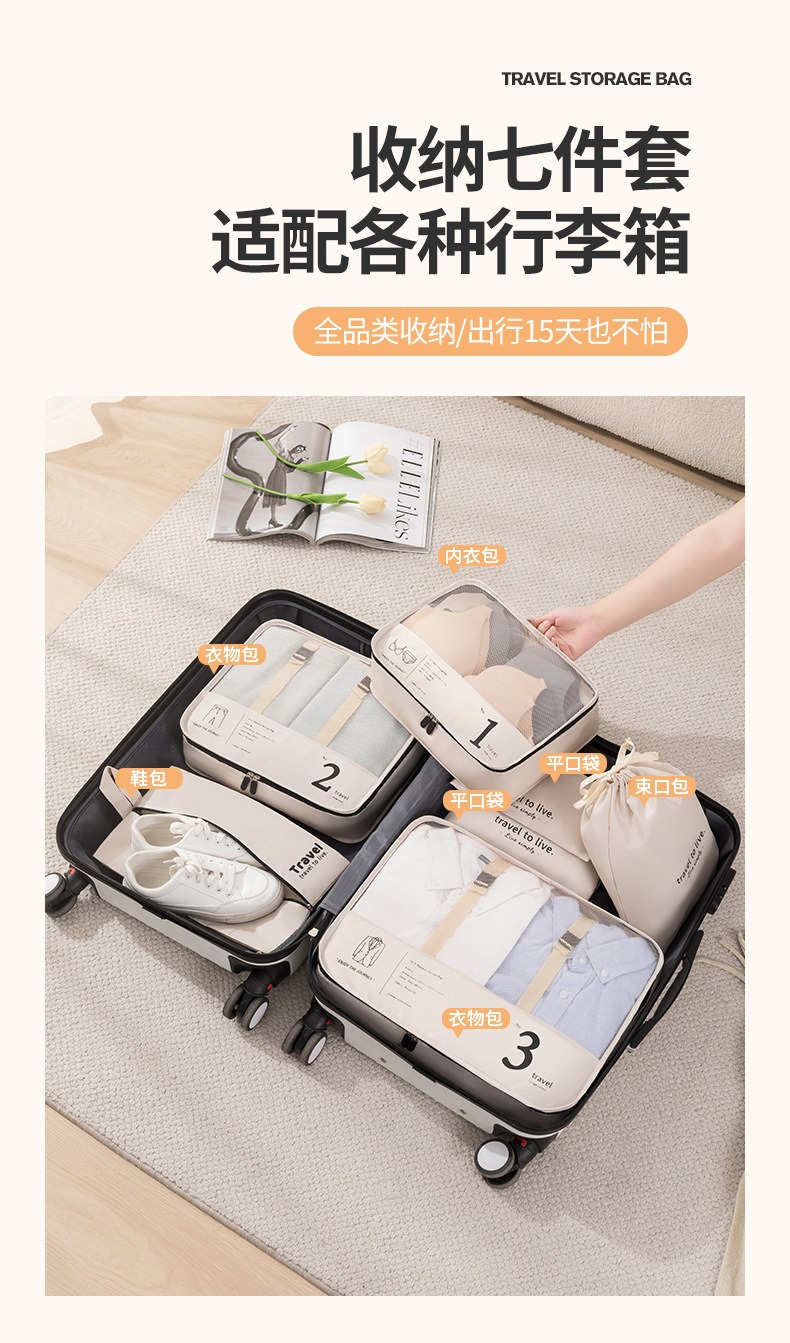 beige travel buggy bag seven-piece (digital bag)