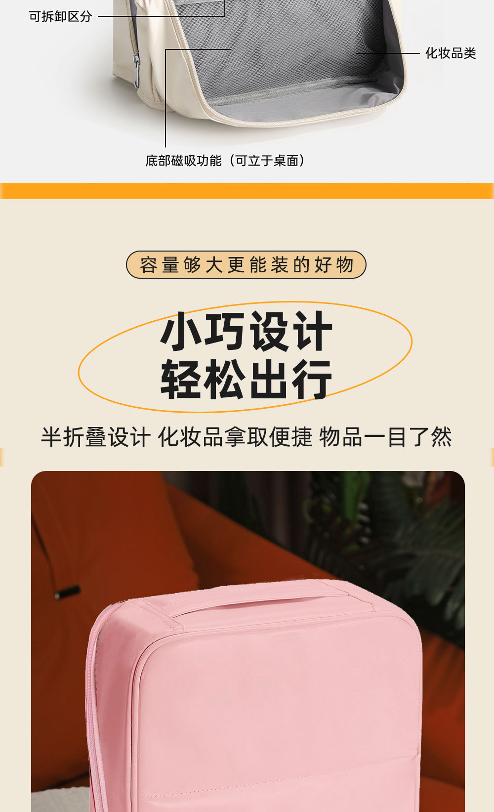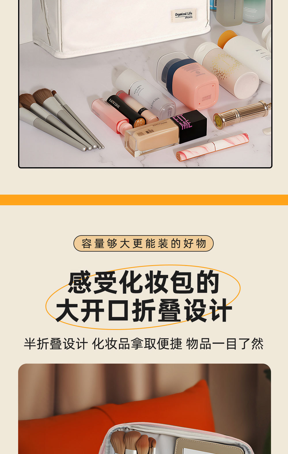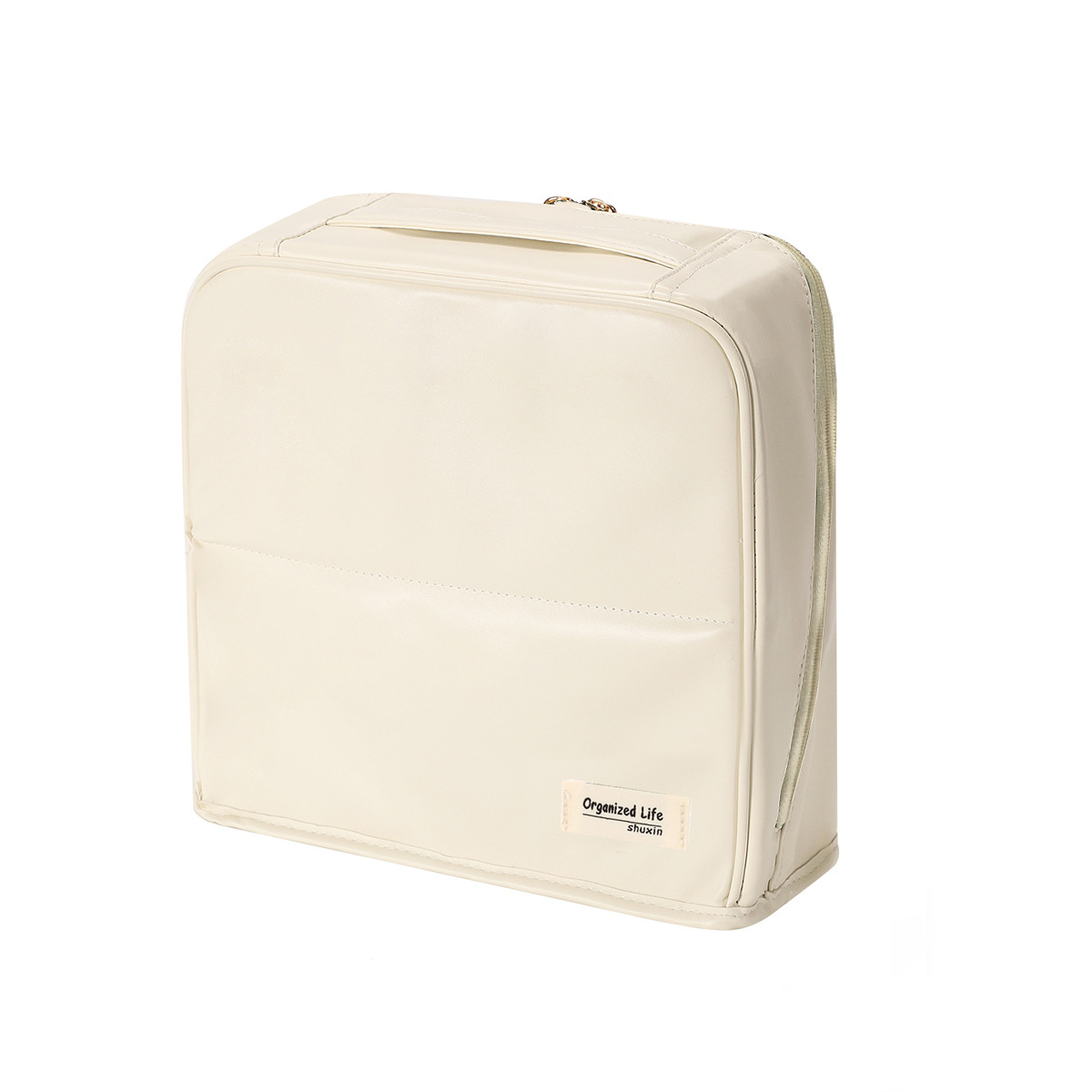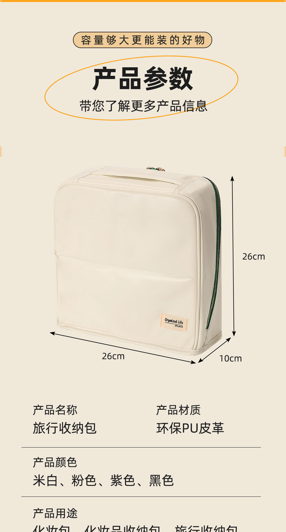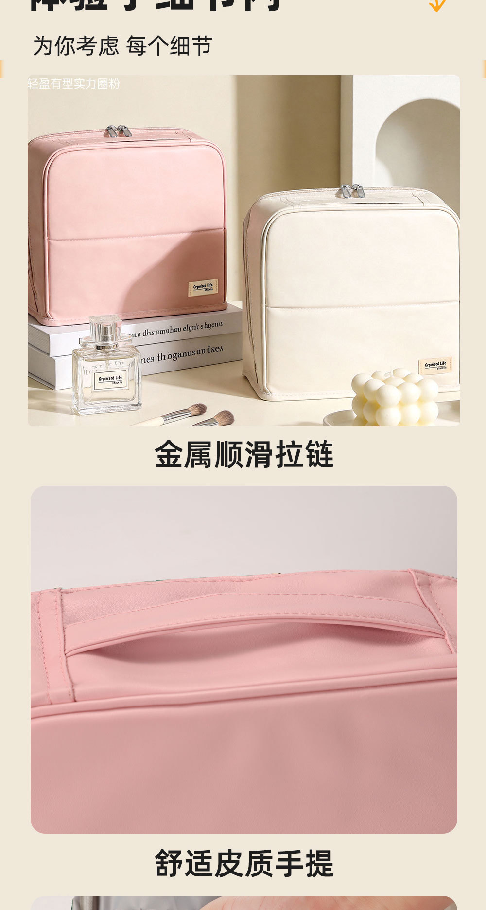 beige leather large size: cloth label same color zipper