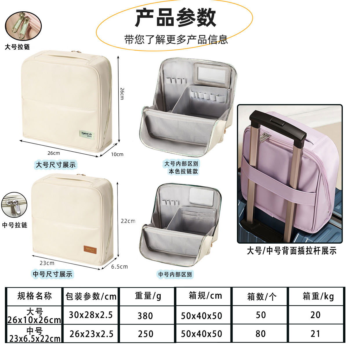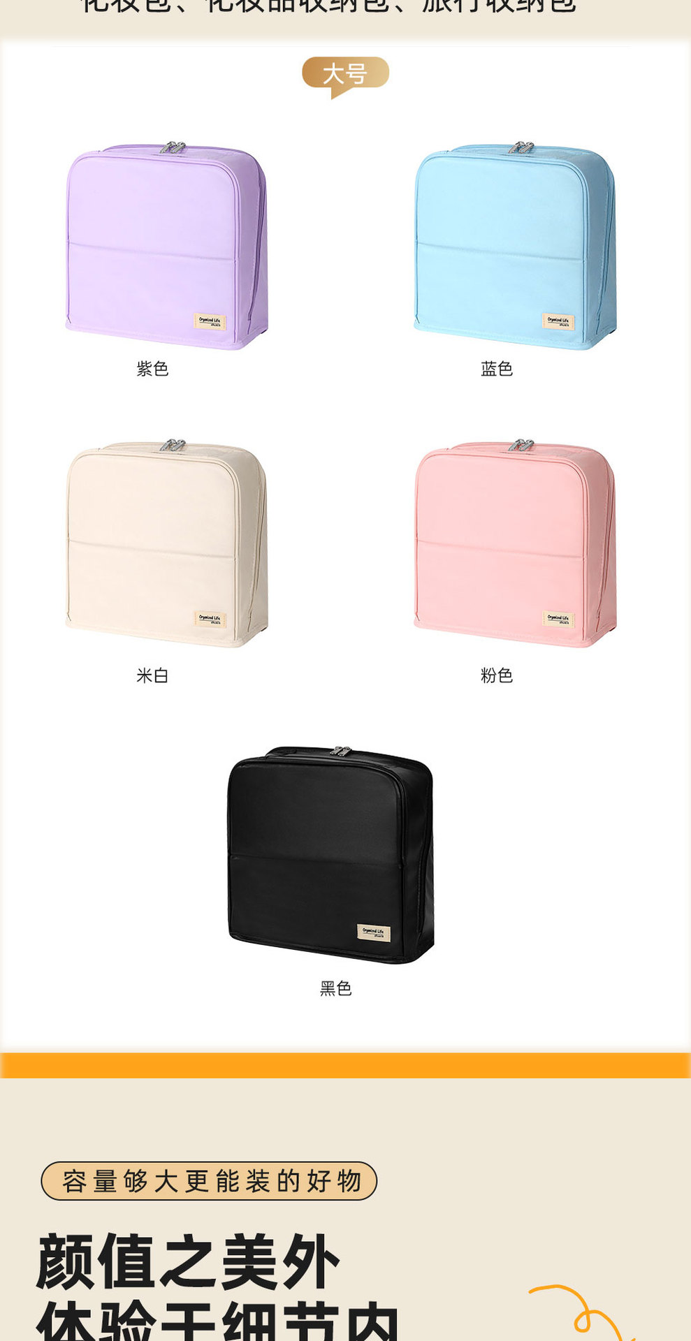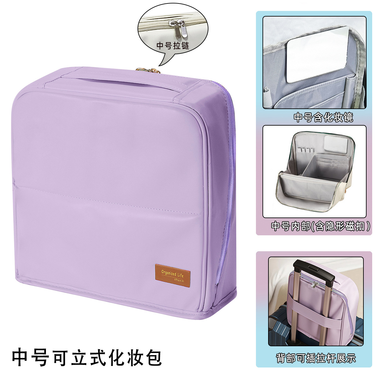 light purple leather large size: cloth label same color zipper