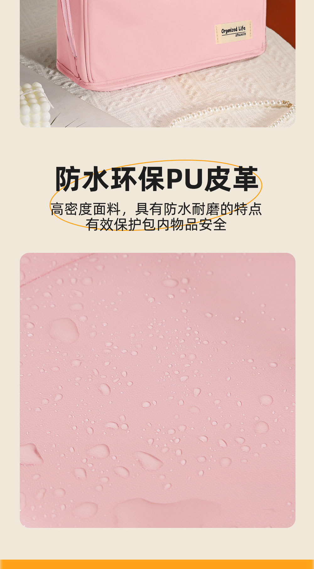 pink leather large size: cloth label same color zipper