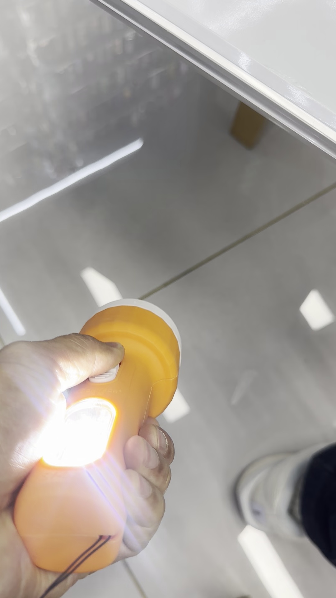 The product is equipped with two AA batteries, and there is a high-brightness LED light in front and four high-brightness LED lights on the side.