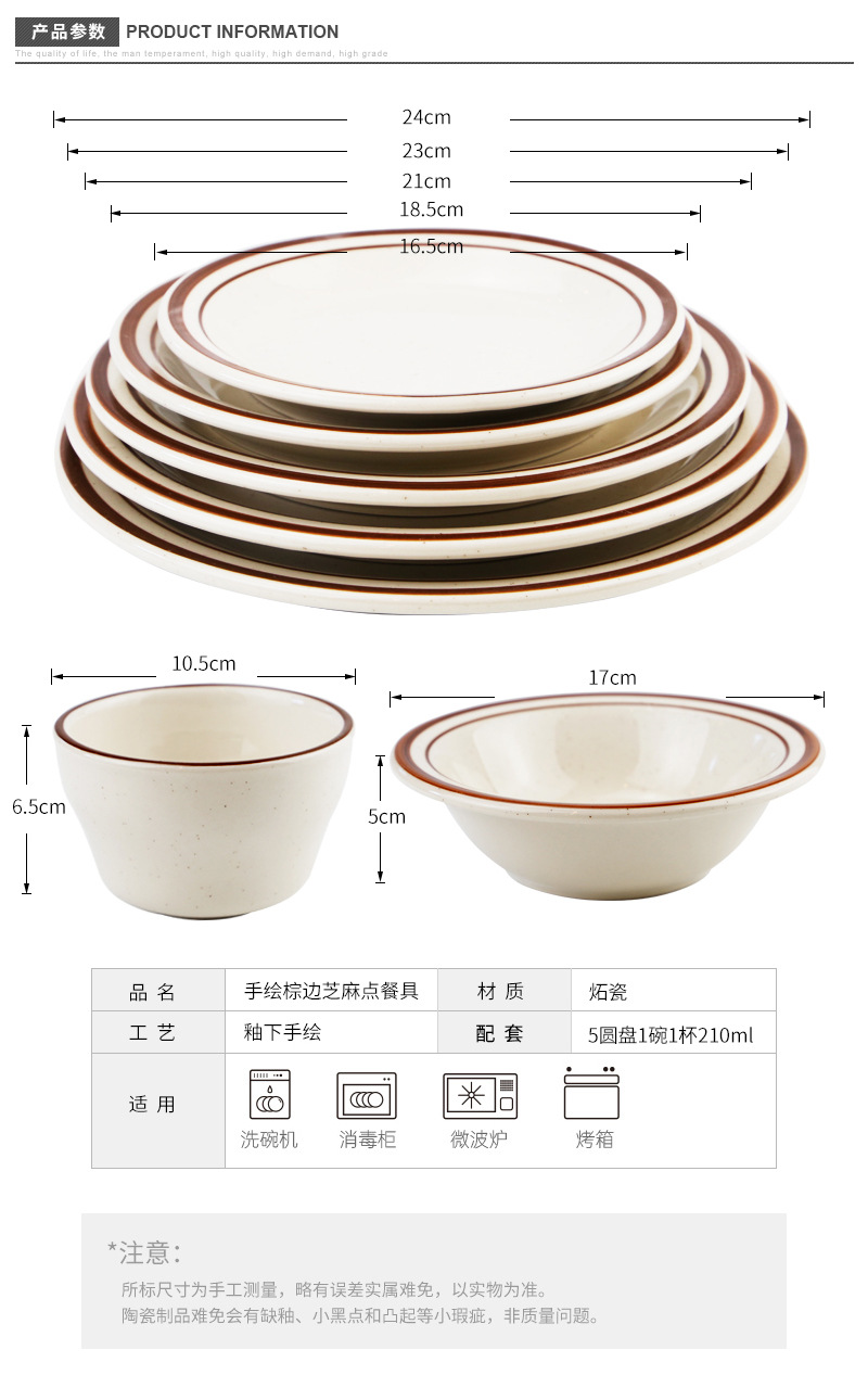 hand painted brown edge sesame dot medium 210ml