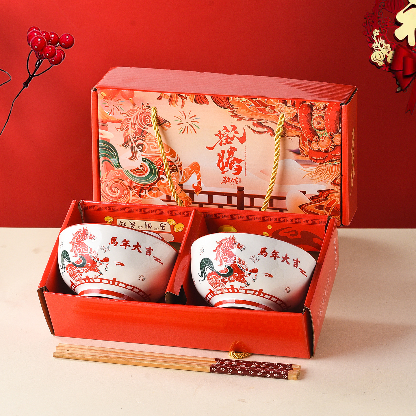 new year horse-2 chopsticks 2 bowls