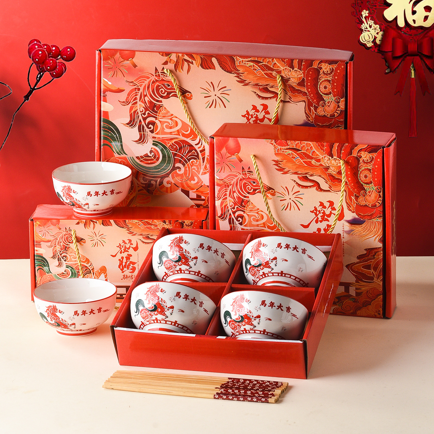 new year horse-4 chopsticks 4 bowls