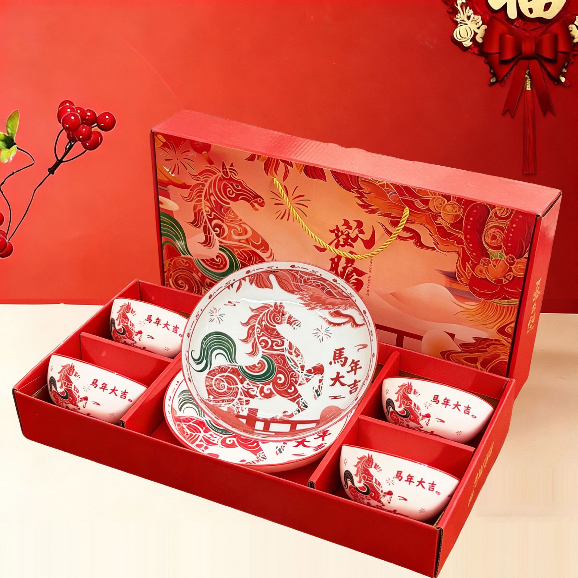 new year horse-4 bowl 1 plate