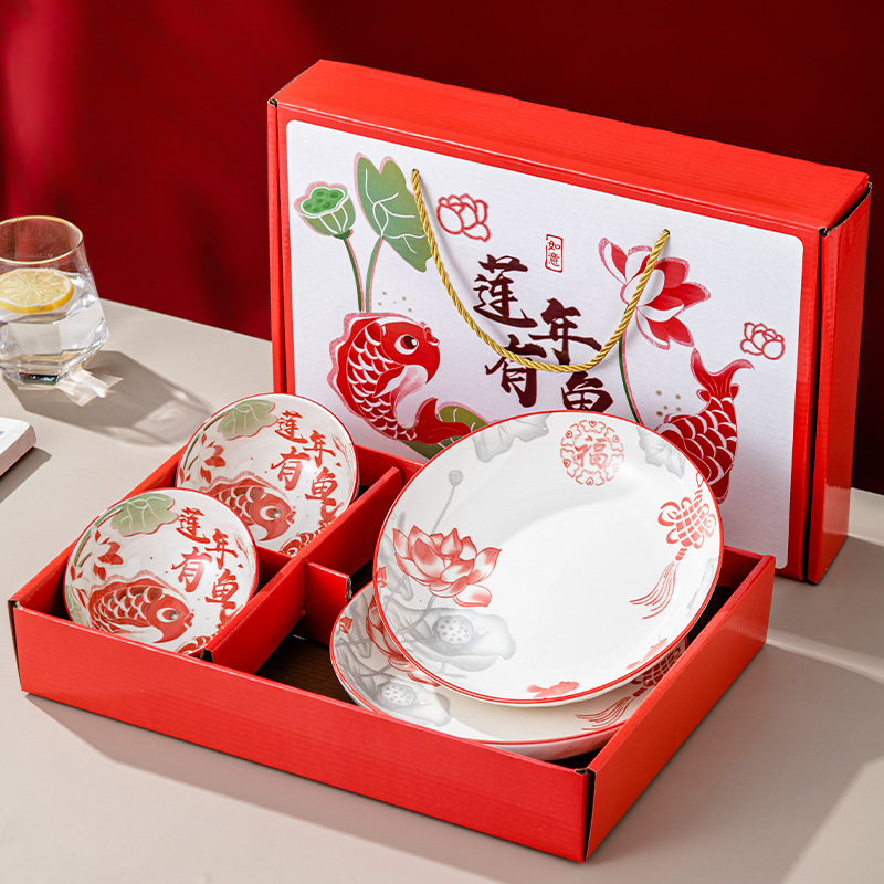 lotus year with fish-2 bowls and 2 plates