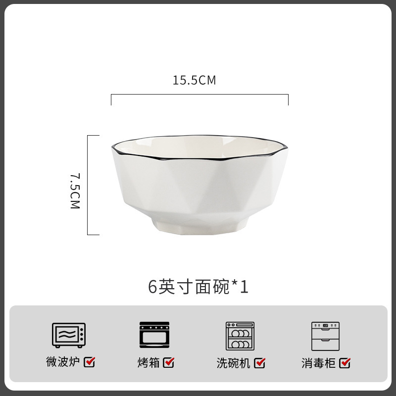 6-inch black line vertical stripe noodle bowl ([1 piece] 60 pieces per box)