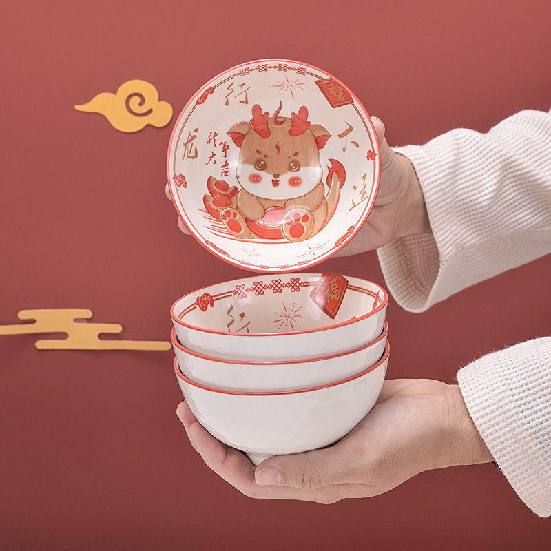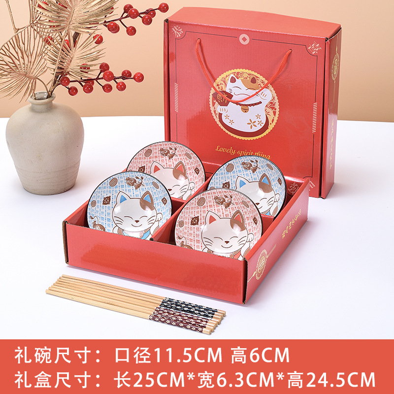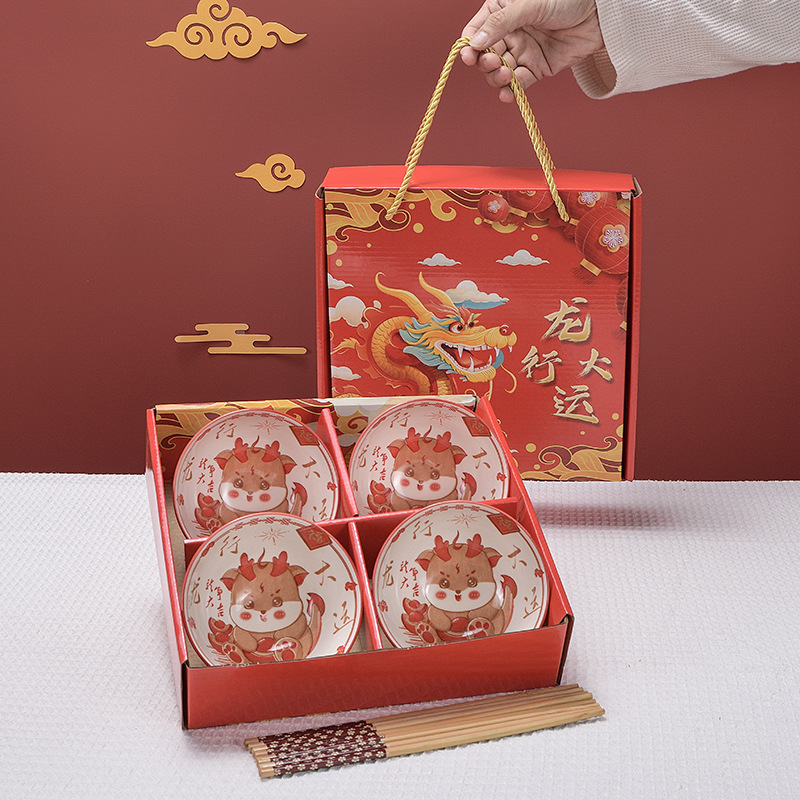 lucky 4 bowls and 4 chopsticks (4.5 inch bowl) portable packaging.