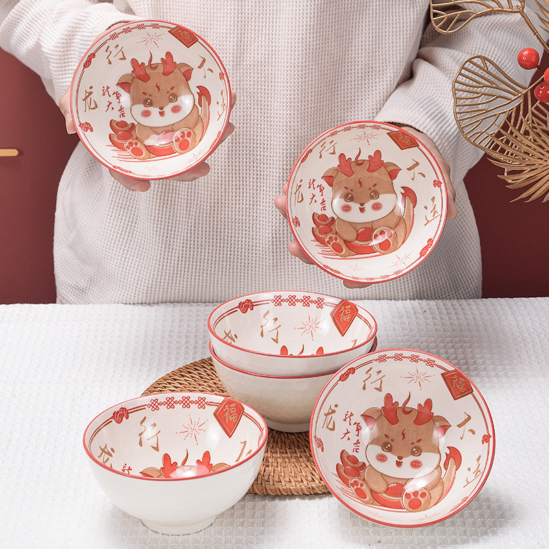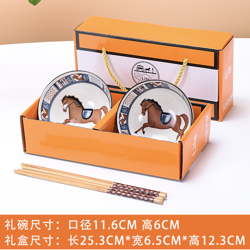 horse 6 bowls 6 chopsticks (4.5 inch bowl) portable packaging