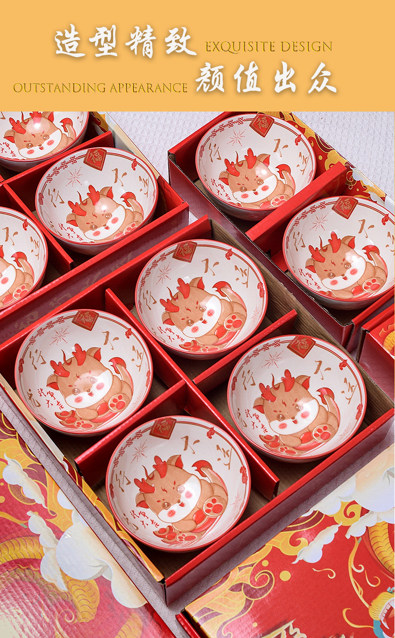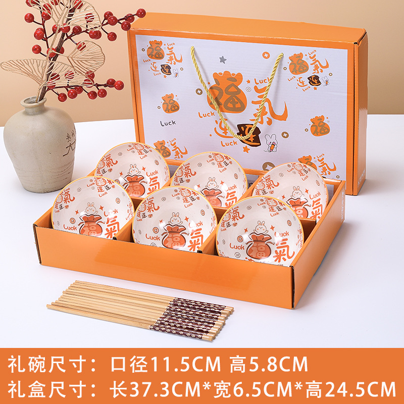 longxing dayun 6 bowls 6 chopsticks (4.5 inch bowl) portable packaging..