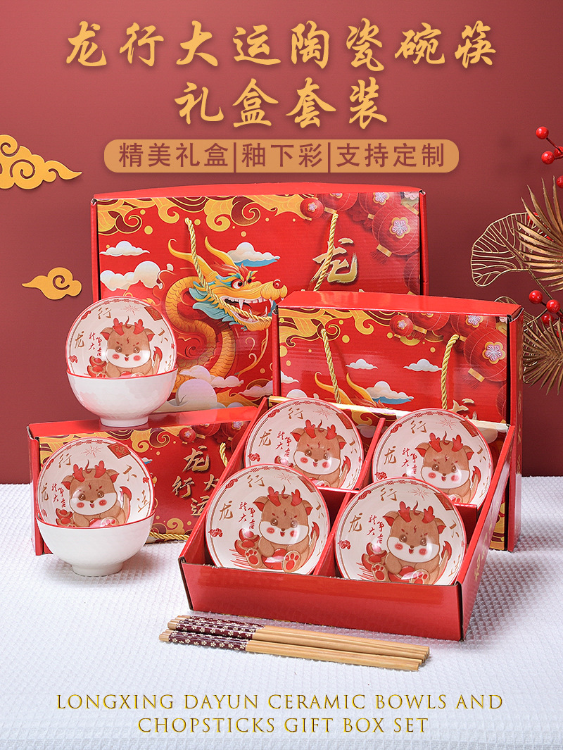 longxing dayun 4 bowls 4 chopsticks (4.5 inch bowl) portable packaging.