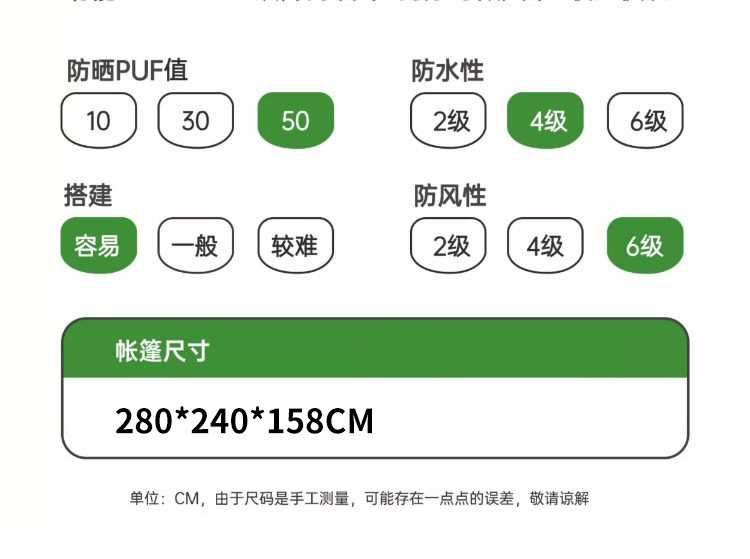 waterproof index of tent bottom: 1000mm (inclusive)-1500mm (exclusive)