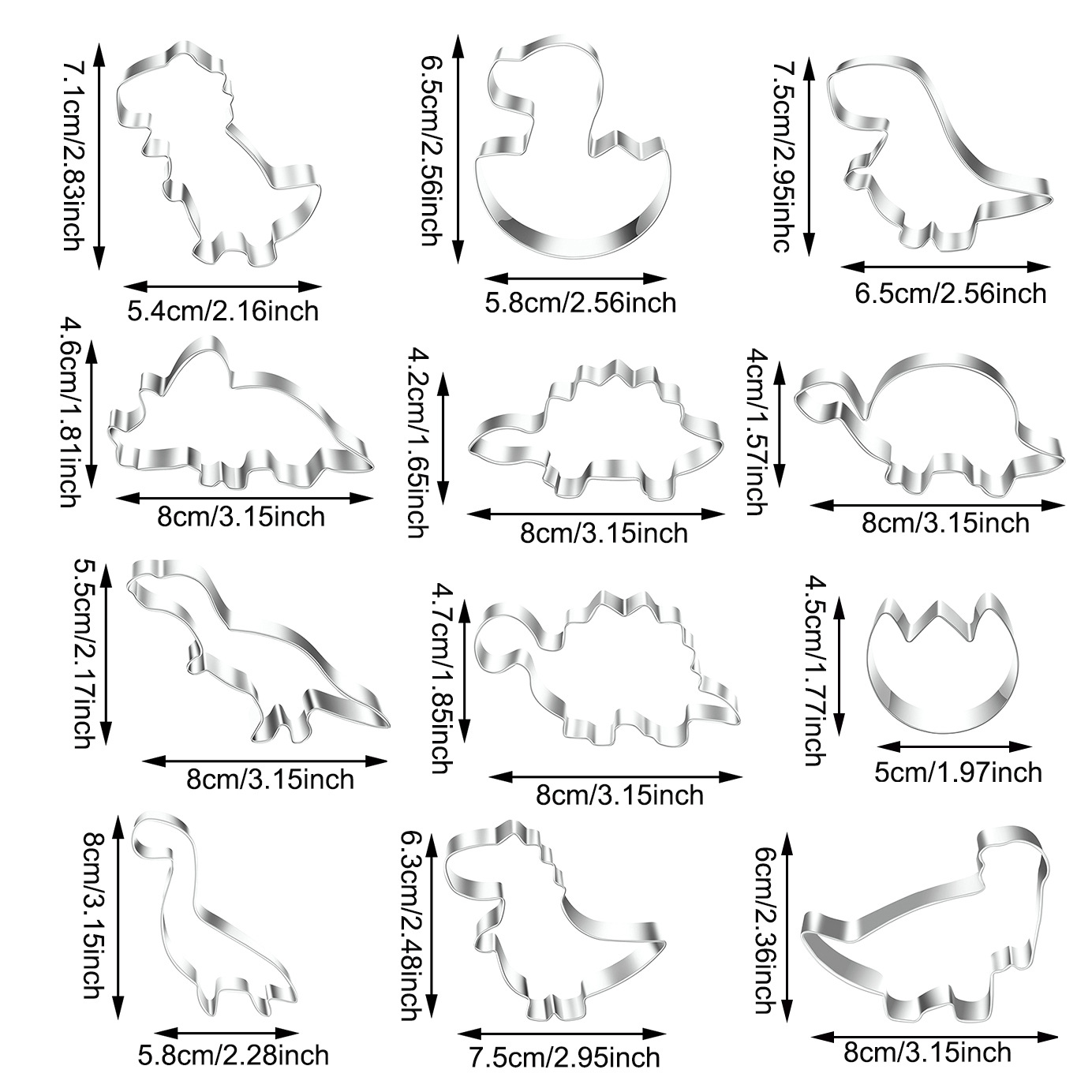 Product Name: Stainless Steel Dinosaur Cookie Molds (12 Pieces)