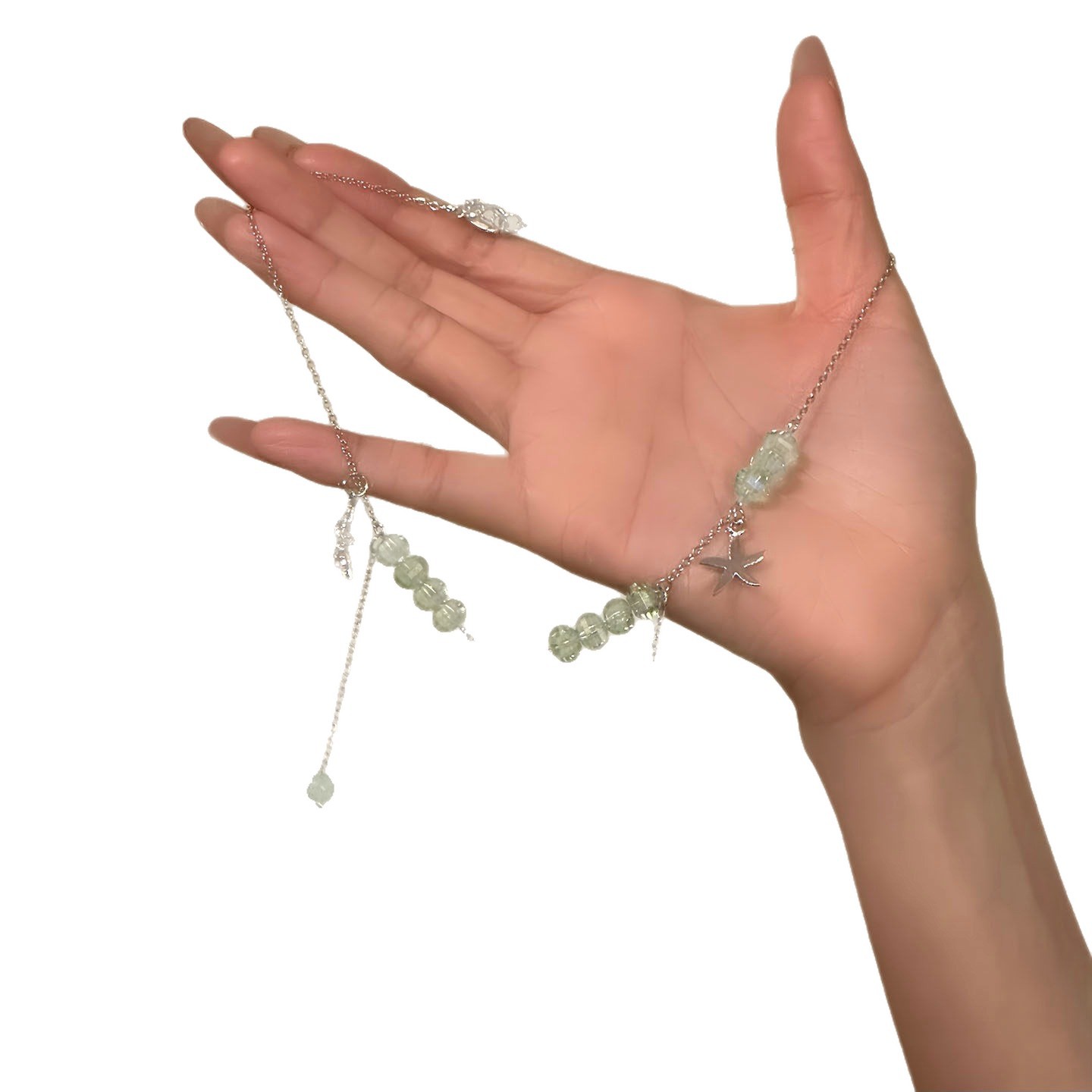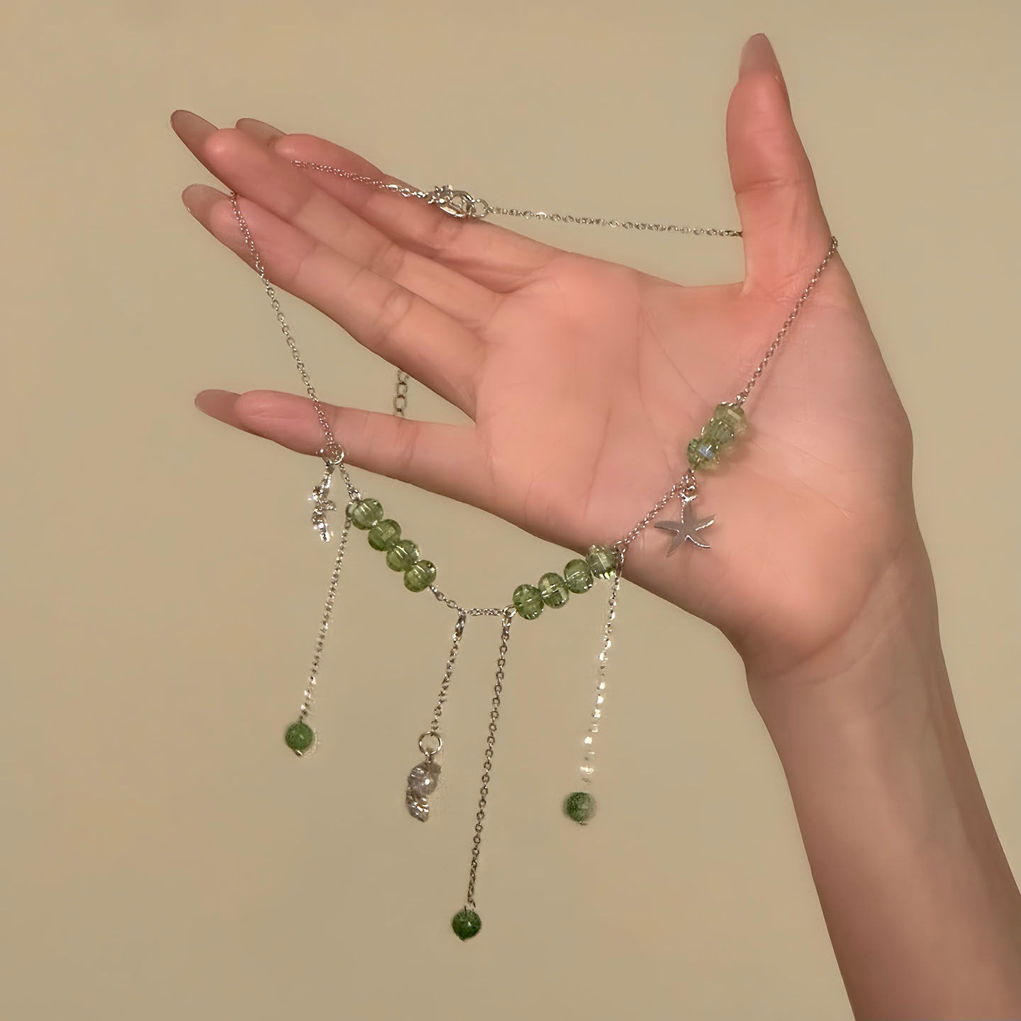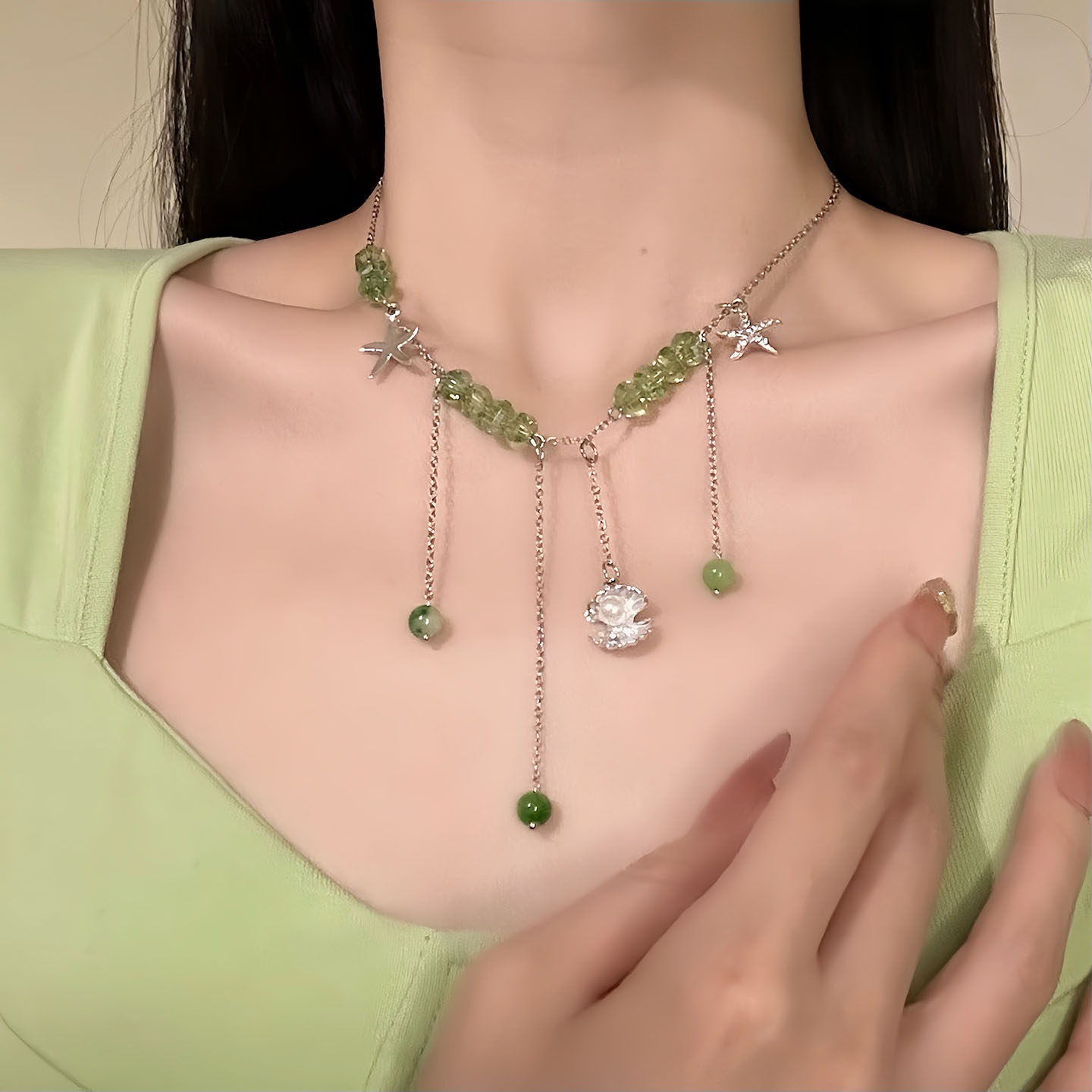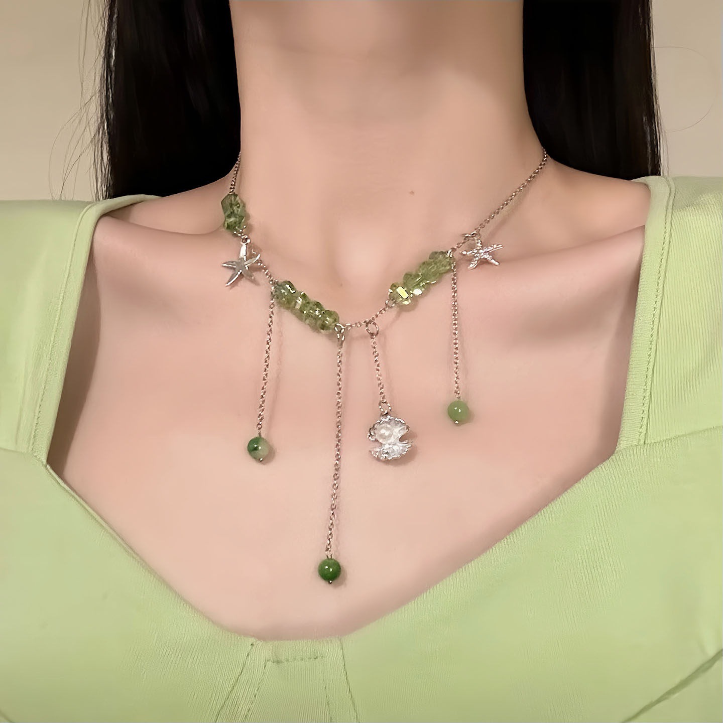 green beaded tassel necklace
