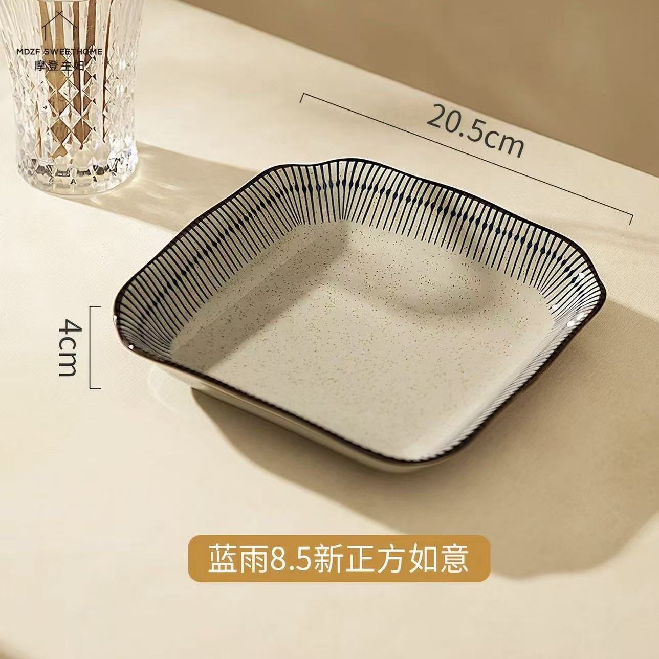 blue rain-8.5-inch square plate