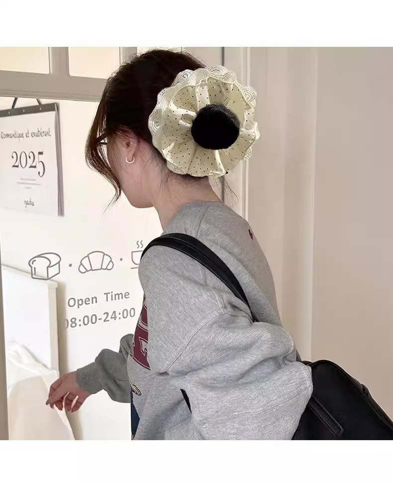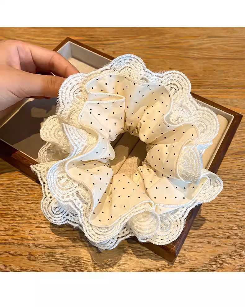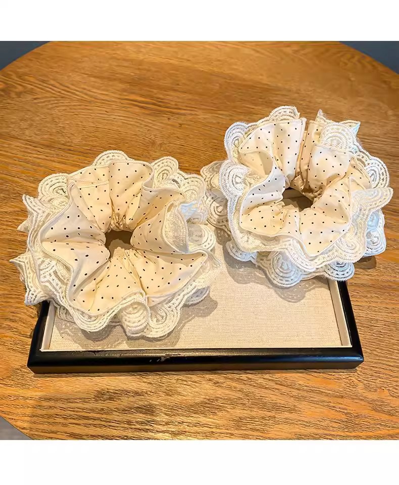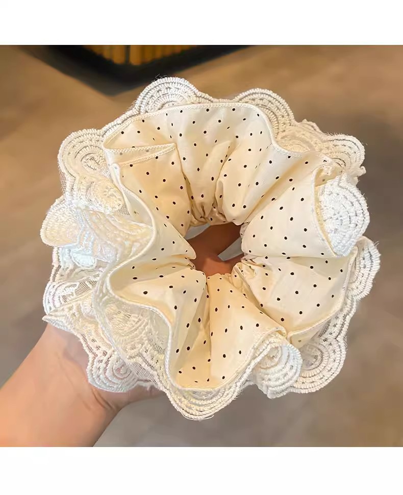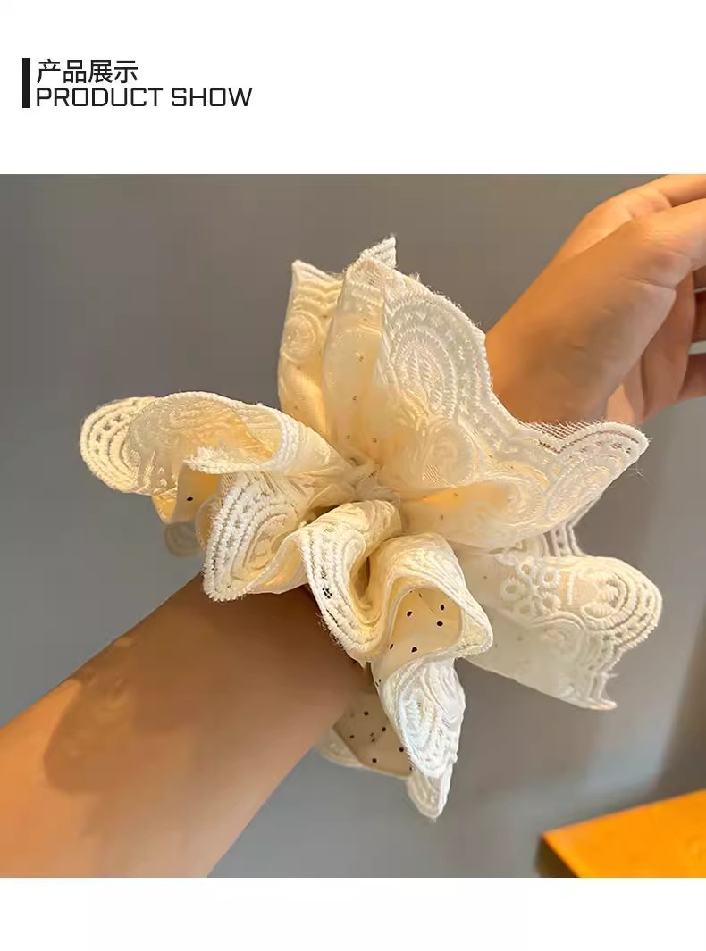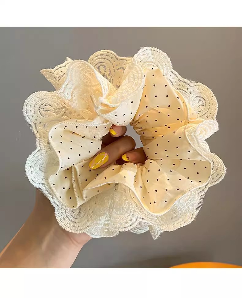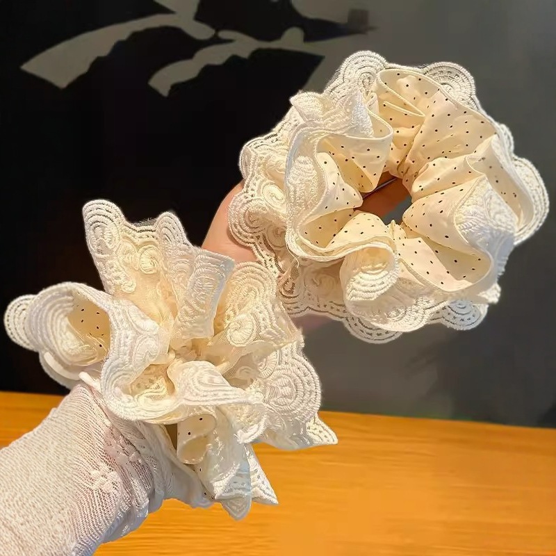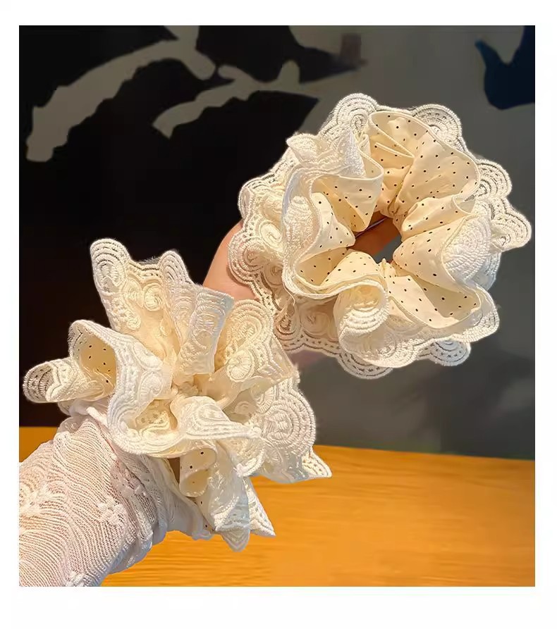 beige high-grade lace headdress flower large intestine hair ring