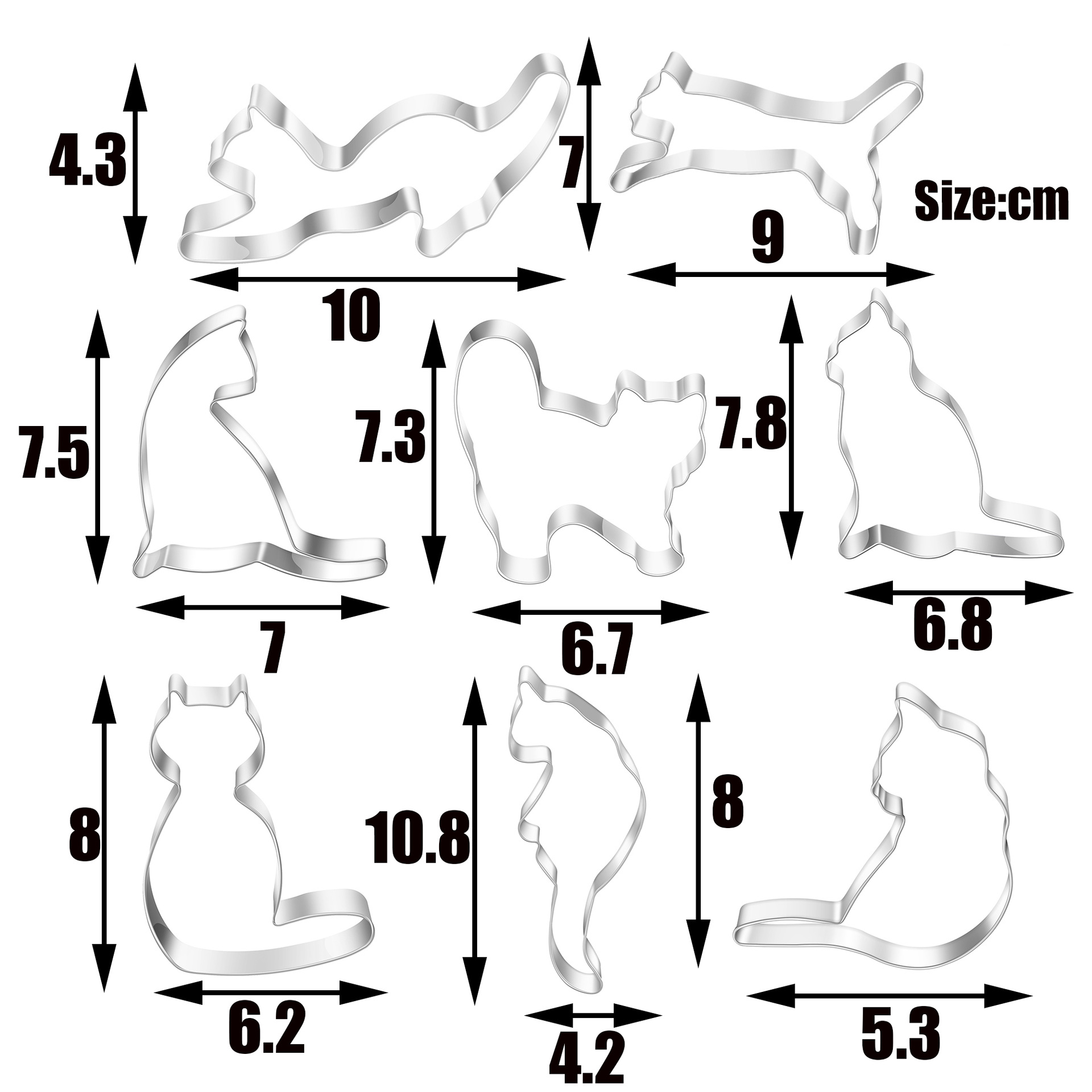 Stainless Steel Cookie Cutter Set - Cat Collection 8-Piece
