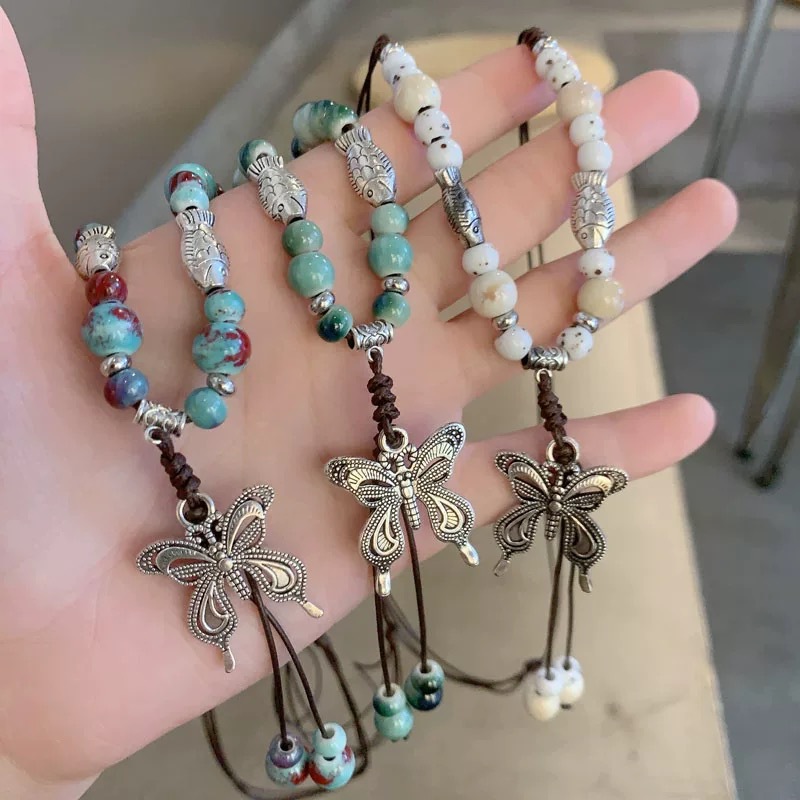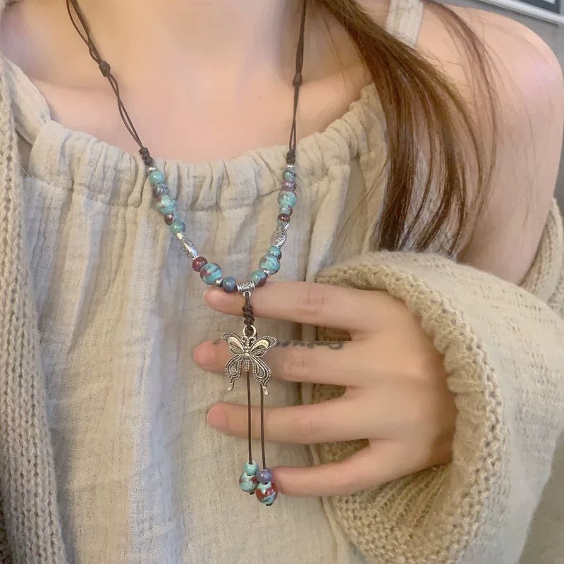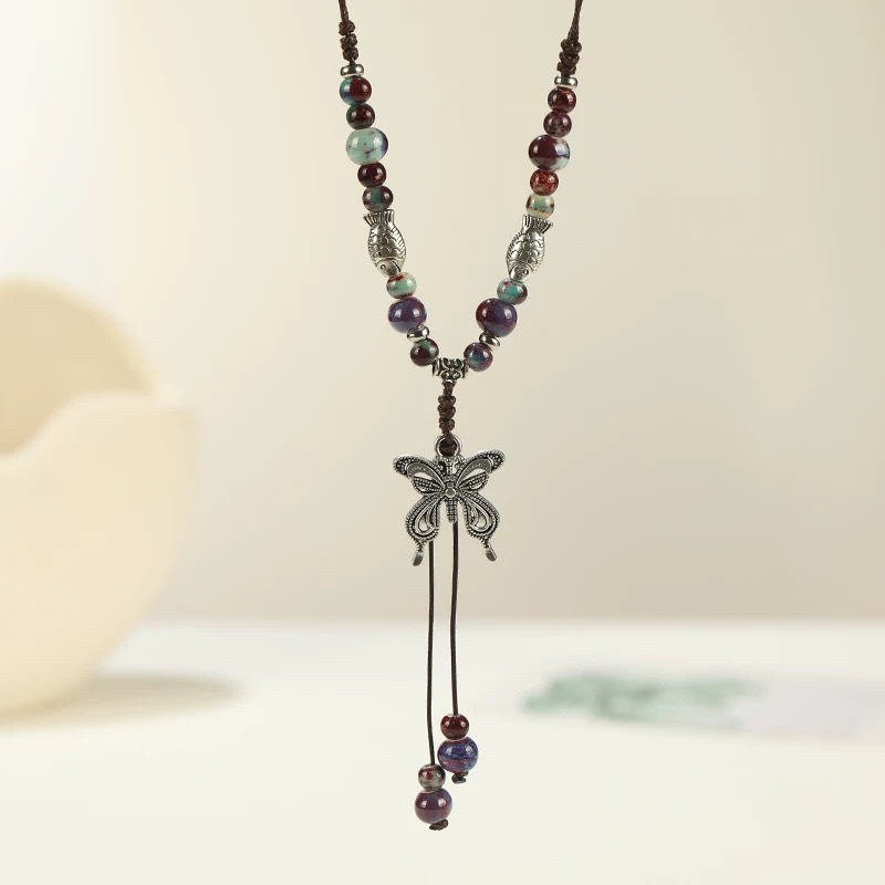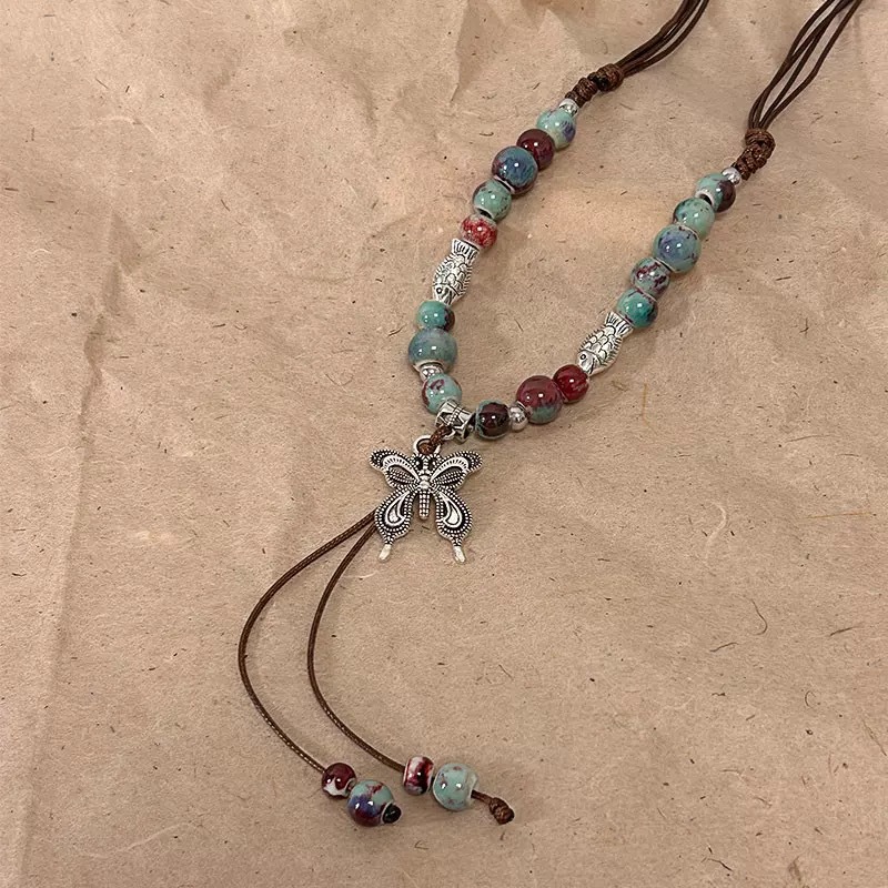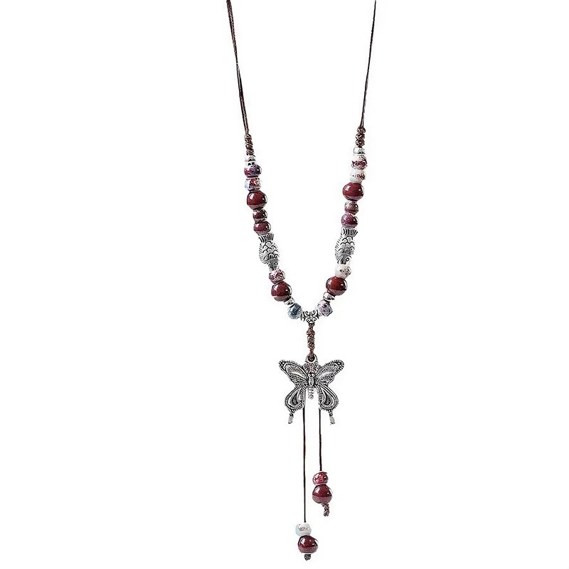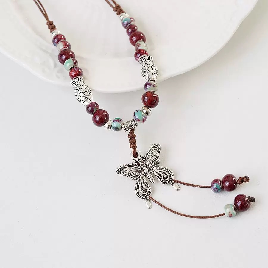 national style ceramic butterfly necklace