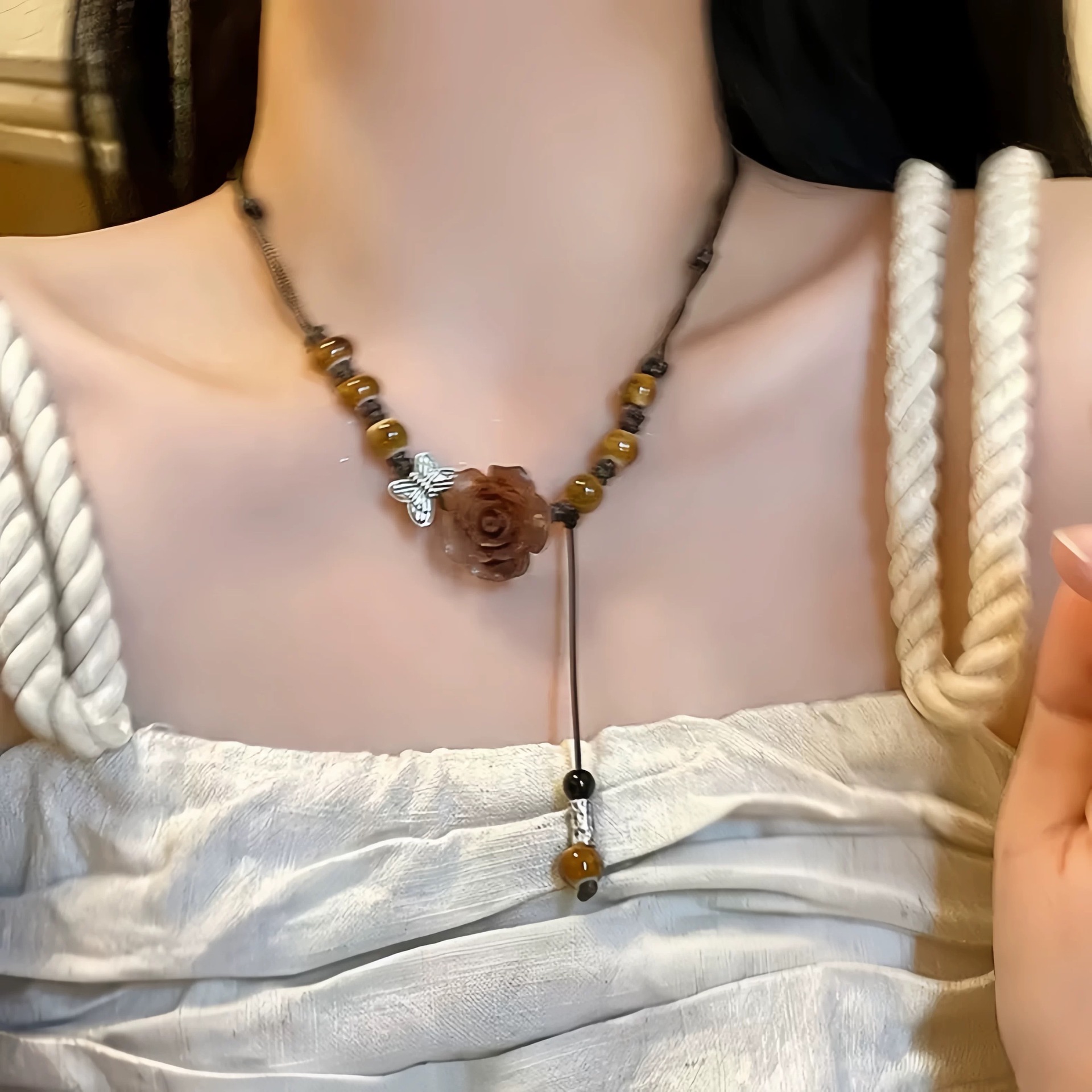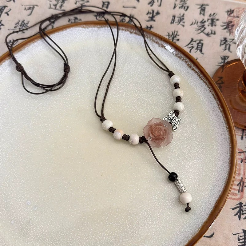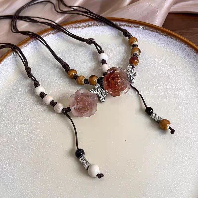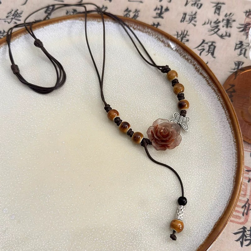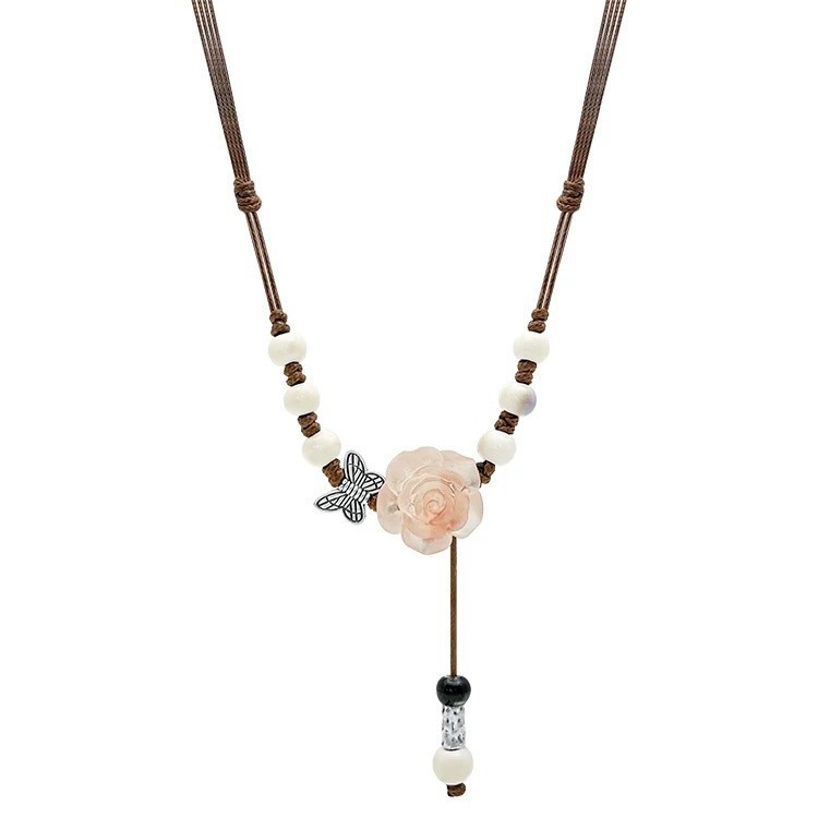 amber ceramic camellia necklace