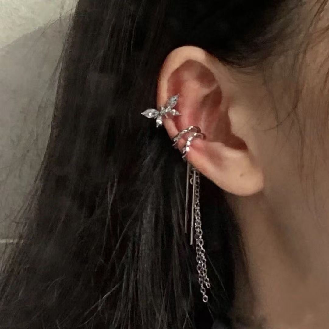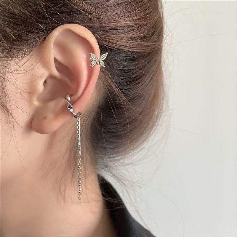 silver butterfly left ear