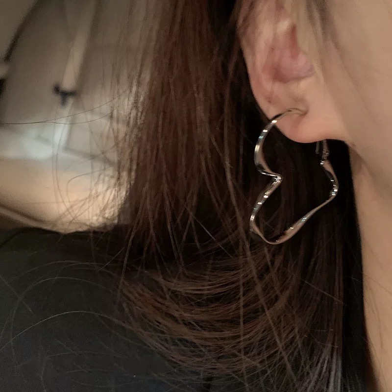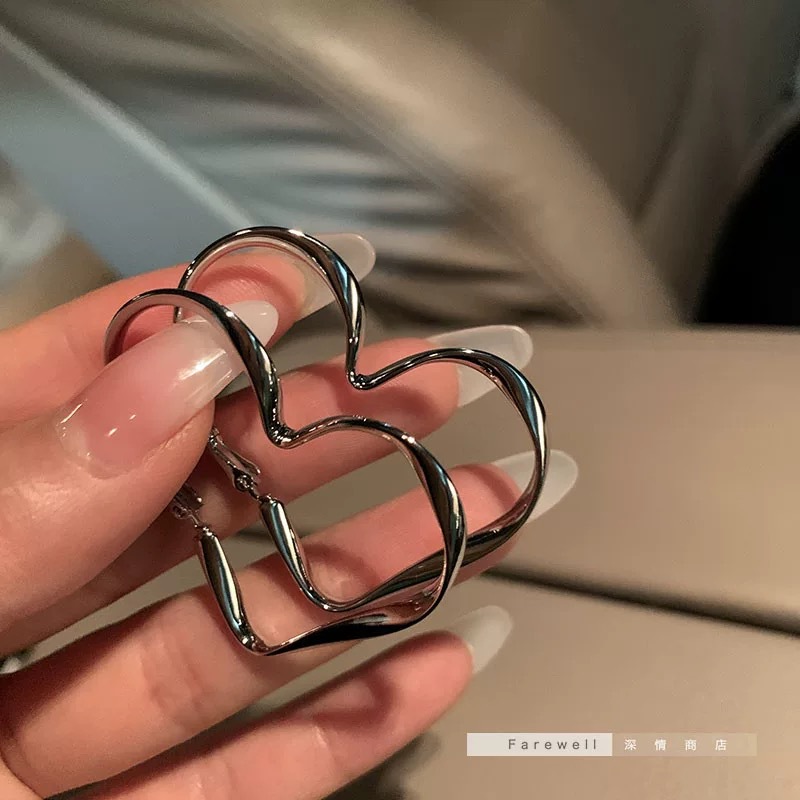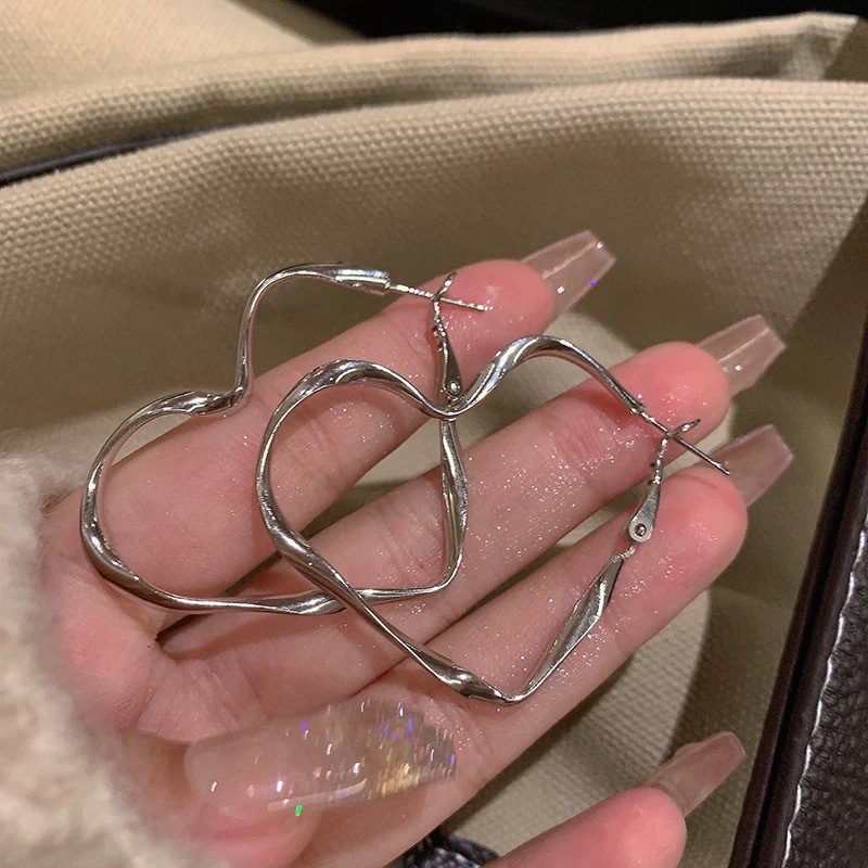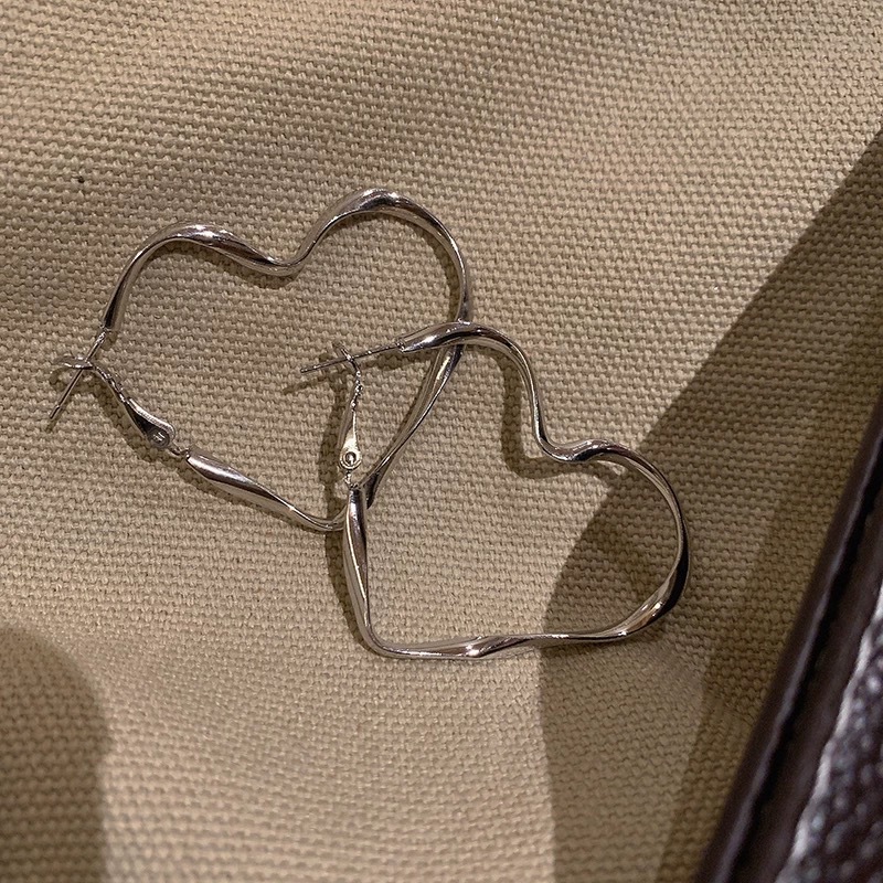silver large love heart earrings