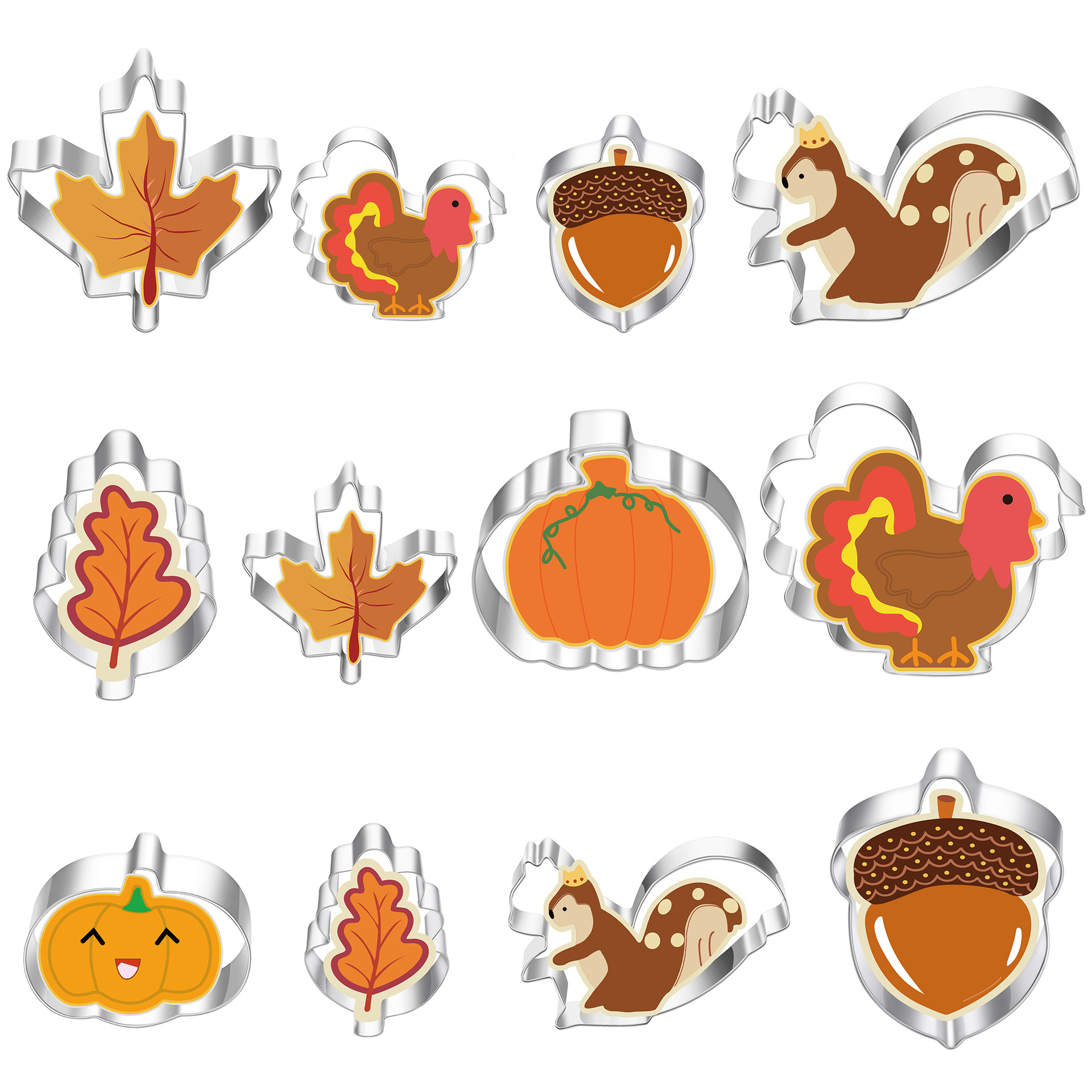 Product Name: 12-piece Stainless Steel Cookie Cutter Set for Thanksgiving Turkey Festival