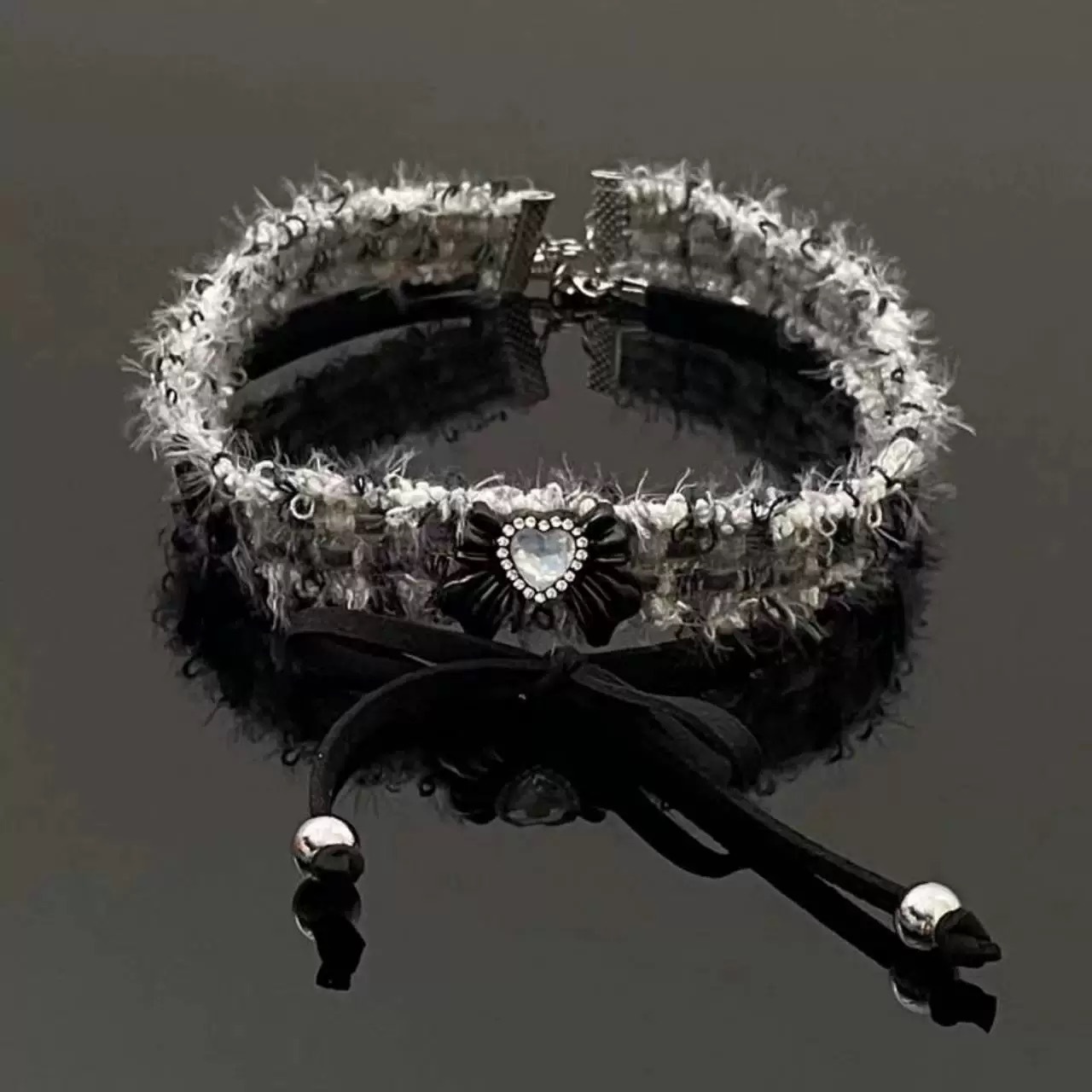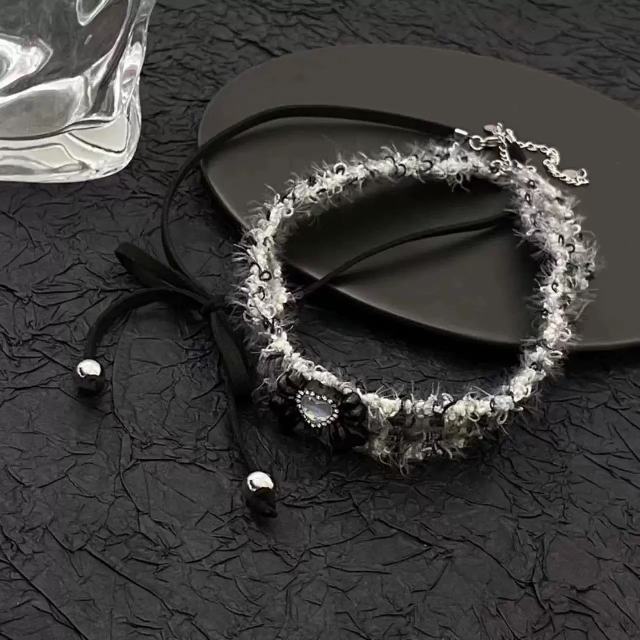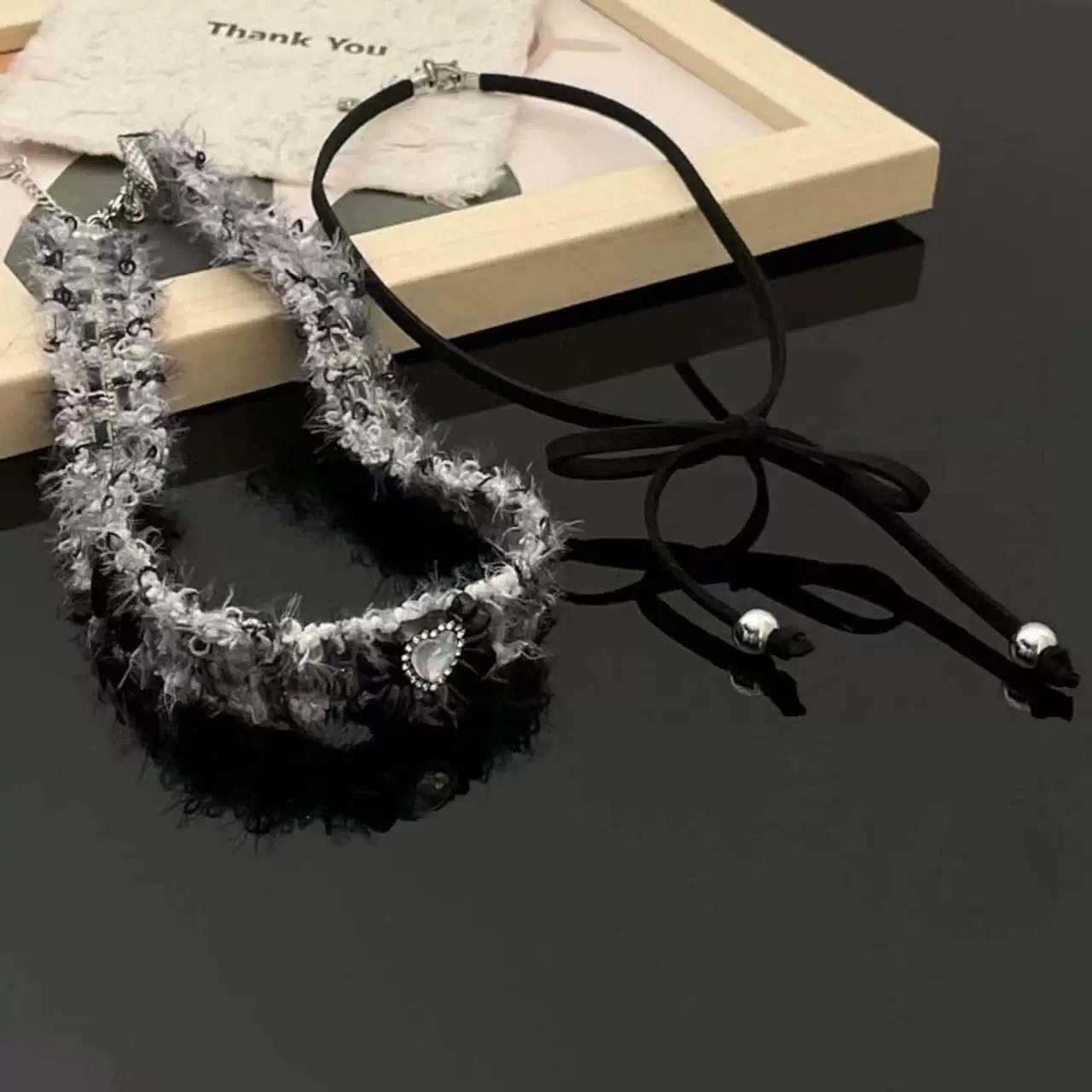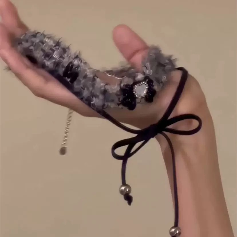 gray velvet bow necklace
