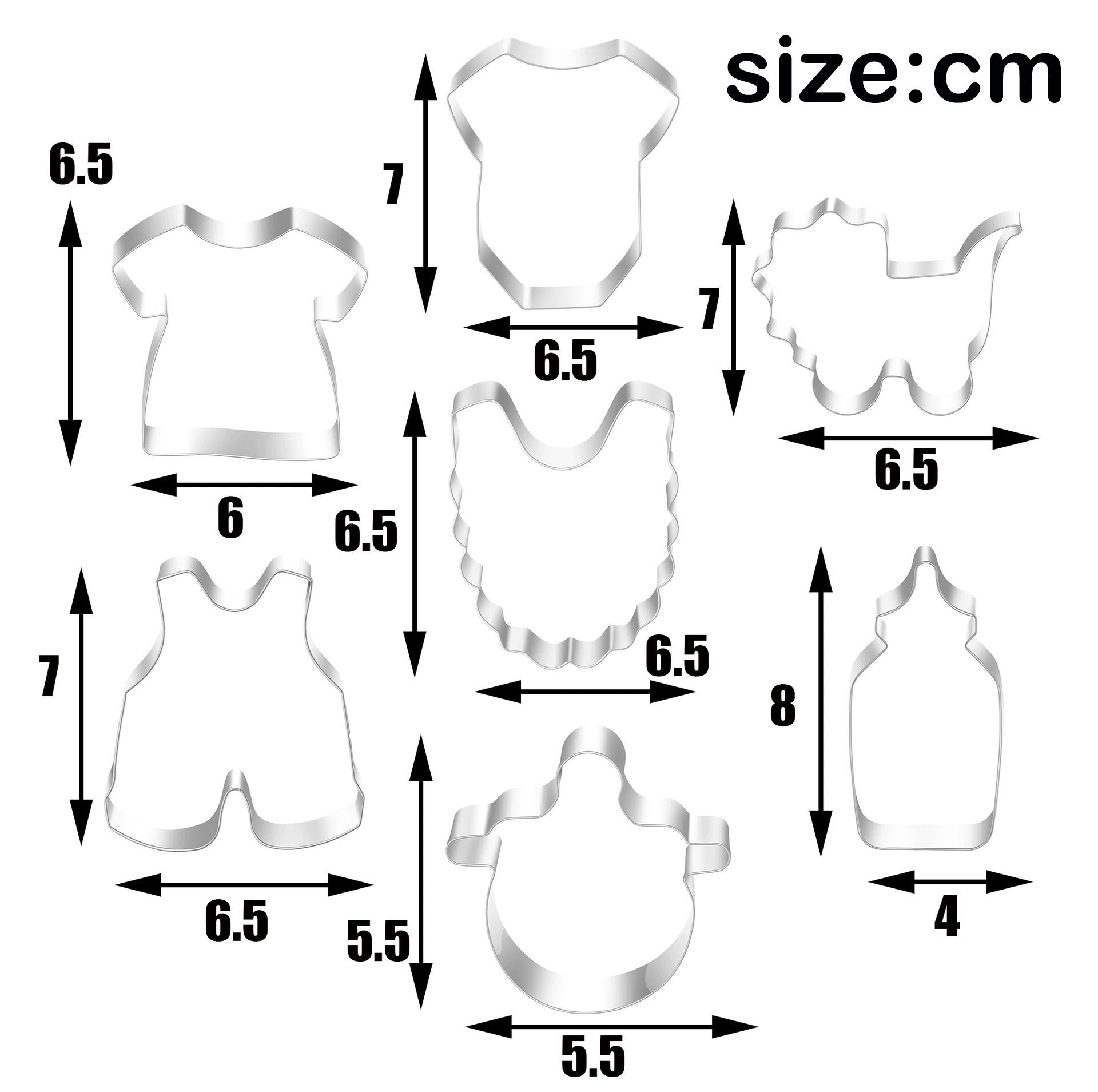 Product name: Motherly Love Series Bottle, Clothes, and Bib Series Stainless Steel Cookie Molds