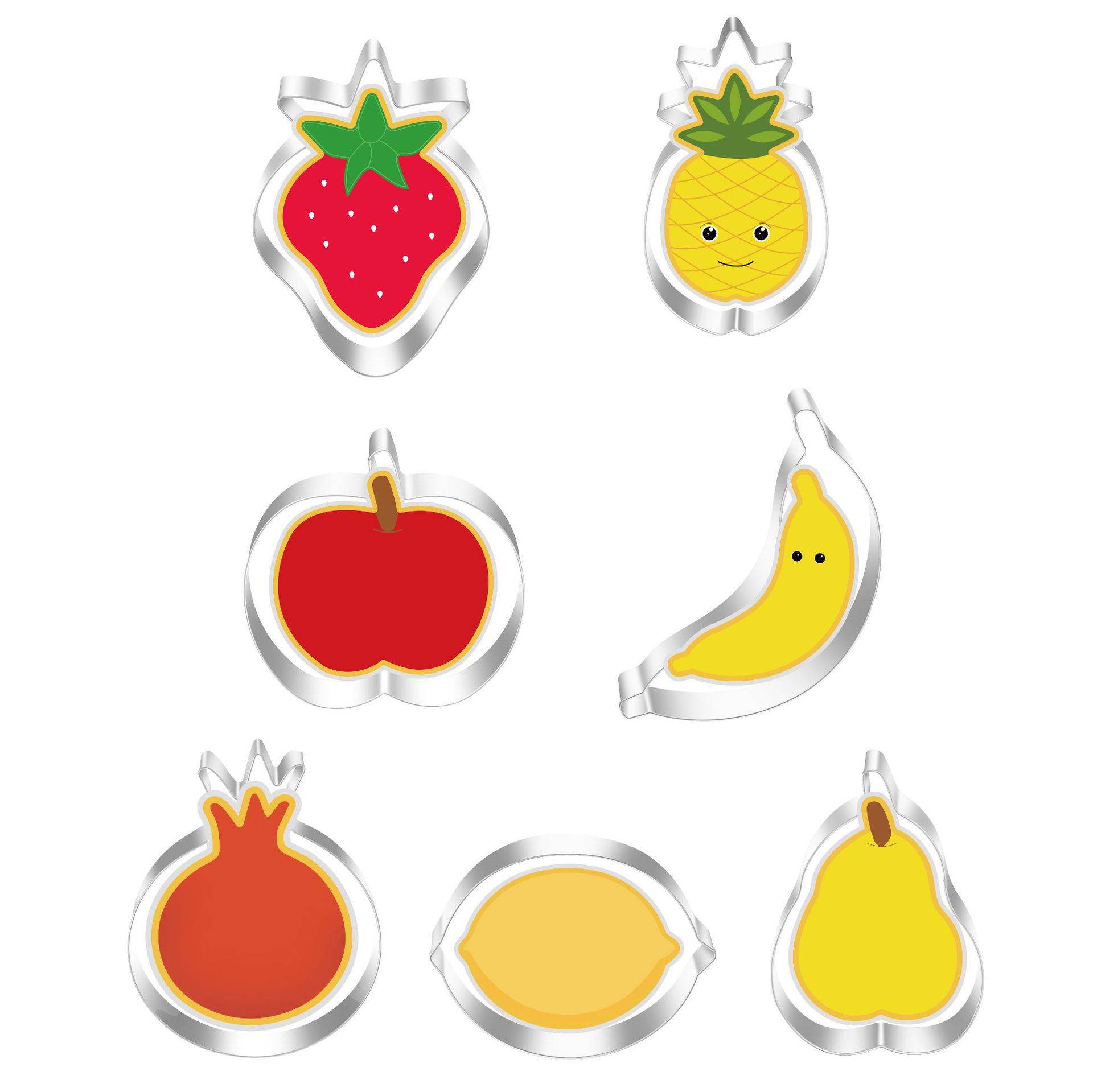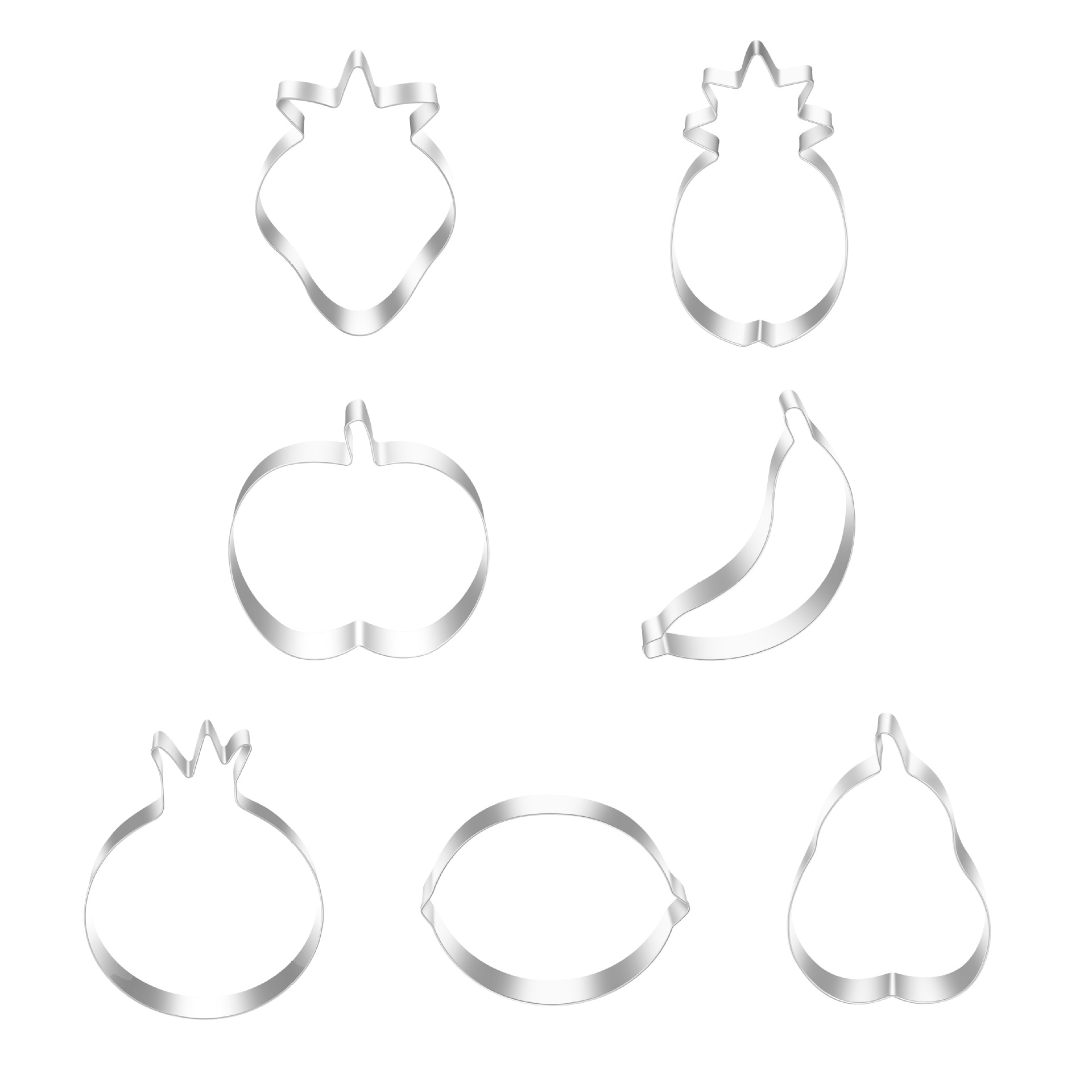Stainless Steel Cookie Cutter Set - Fruit Series (Pineapple, Grapes, Banana, Apple, Lemon, Strawberry) - 7-Piece Combo Kit
