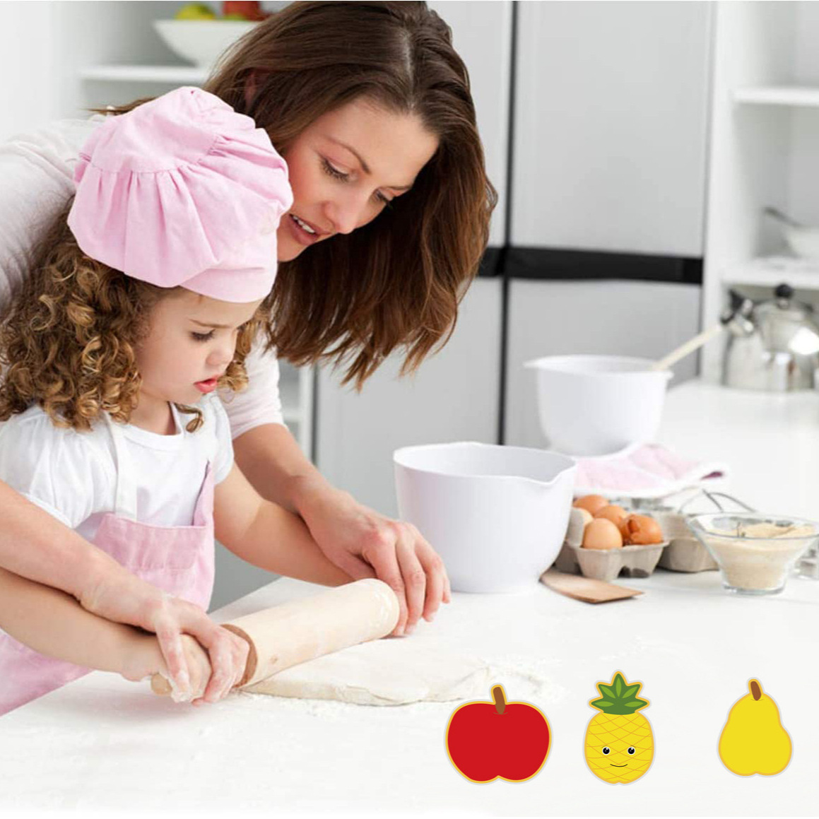 Instructions: Place the dough on a sugarpaste silicone mat and roll it flat with a rolling pin. Cut out the desired shapes, place them in the oven, and once baked, remove them. Use buttercream, food coloring, jam, etc. to apply your favorite designs.