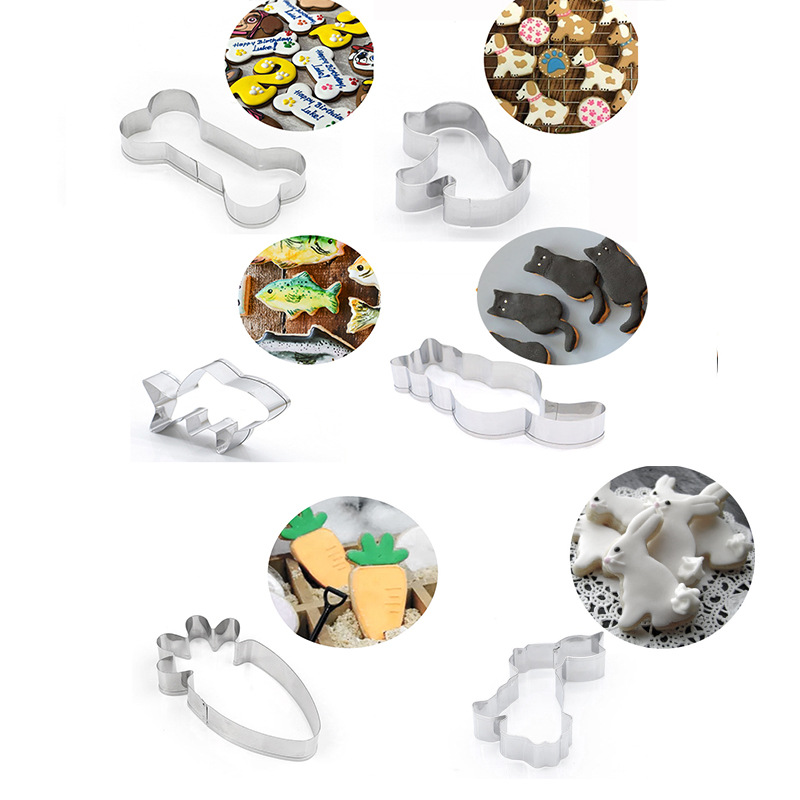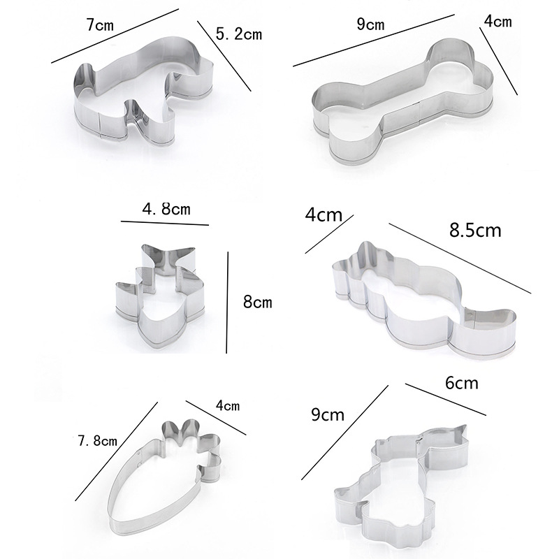 Stainless Steel Cookie Cutter - Dog Bone, Cat Fish, Rabbit Carrot, Six-piece Set