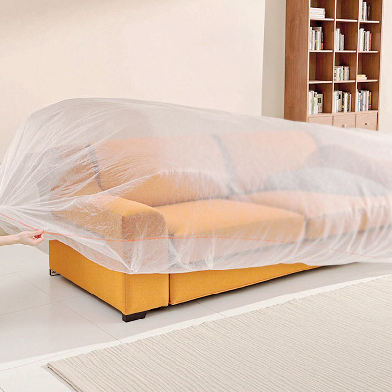 disposable dust cover sofa full covered elastic drawstring bedspread decoration dustproof plastic film household furniture protective film
